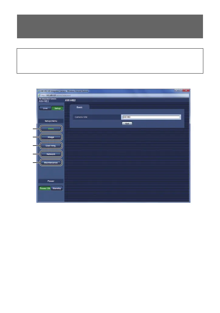 You can configure the unit’s settings on web setting screen (the Setup screen)/camera menu.