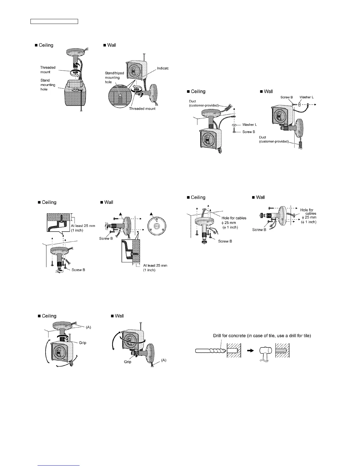 8. Mount the flexible stand firmly to the ceiling or wall with