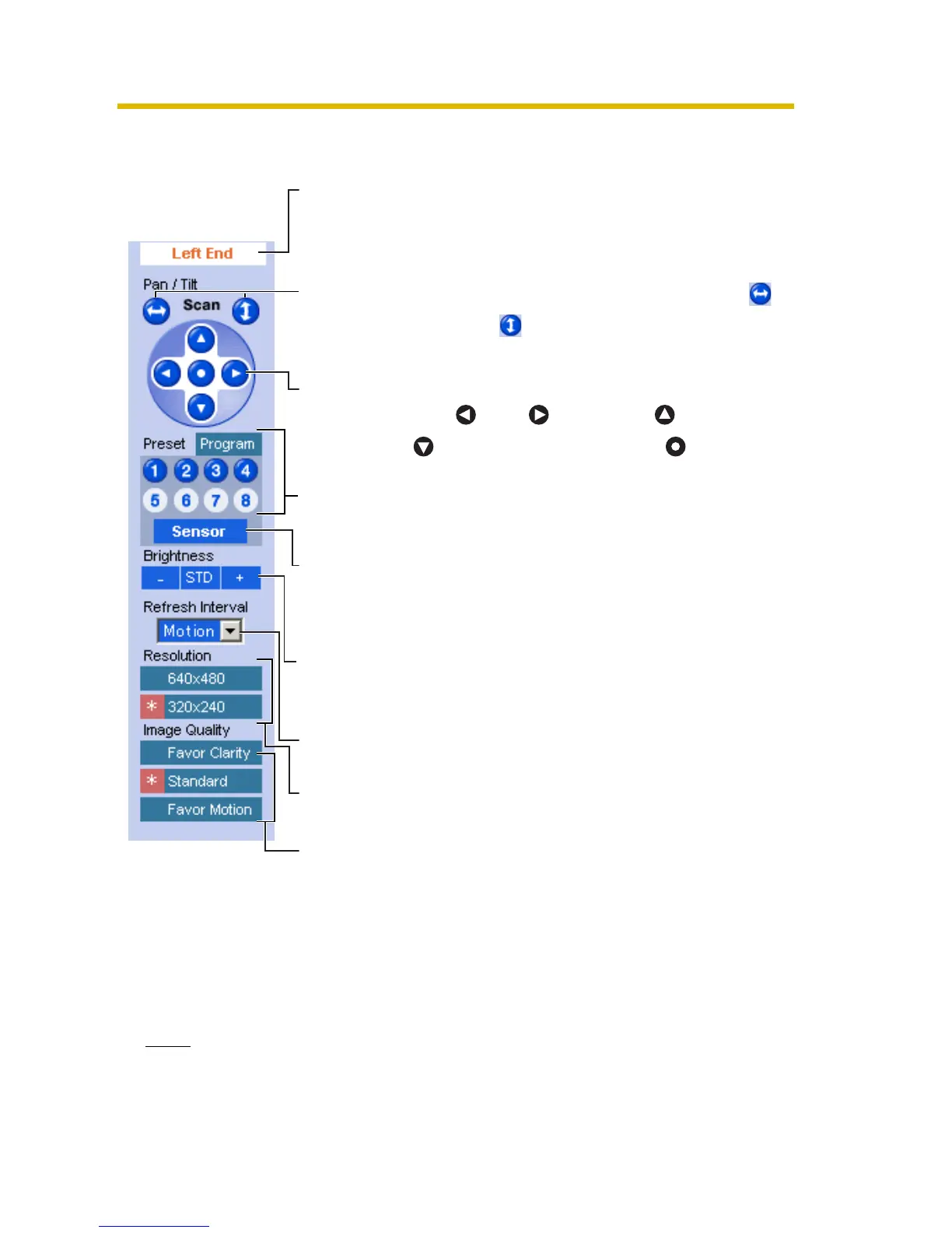 Pan ( : Left, : Right), Tilt ( : Up,