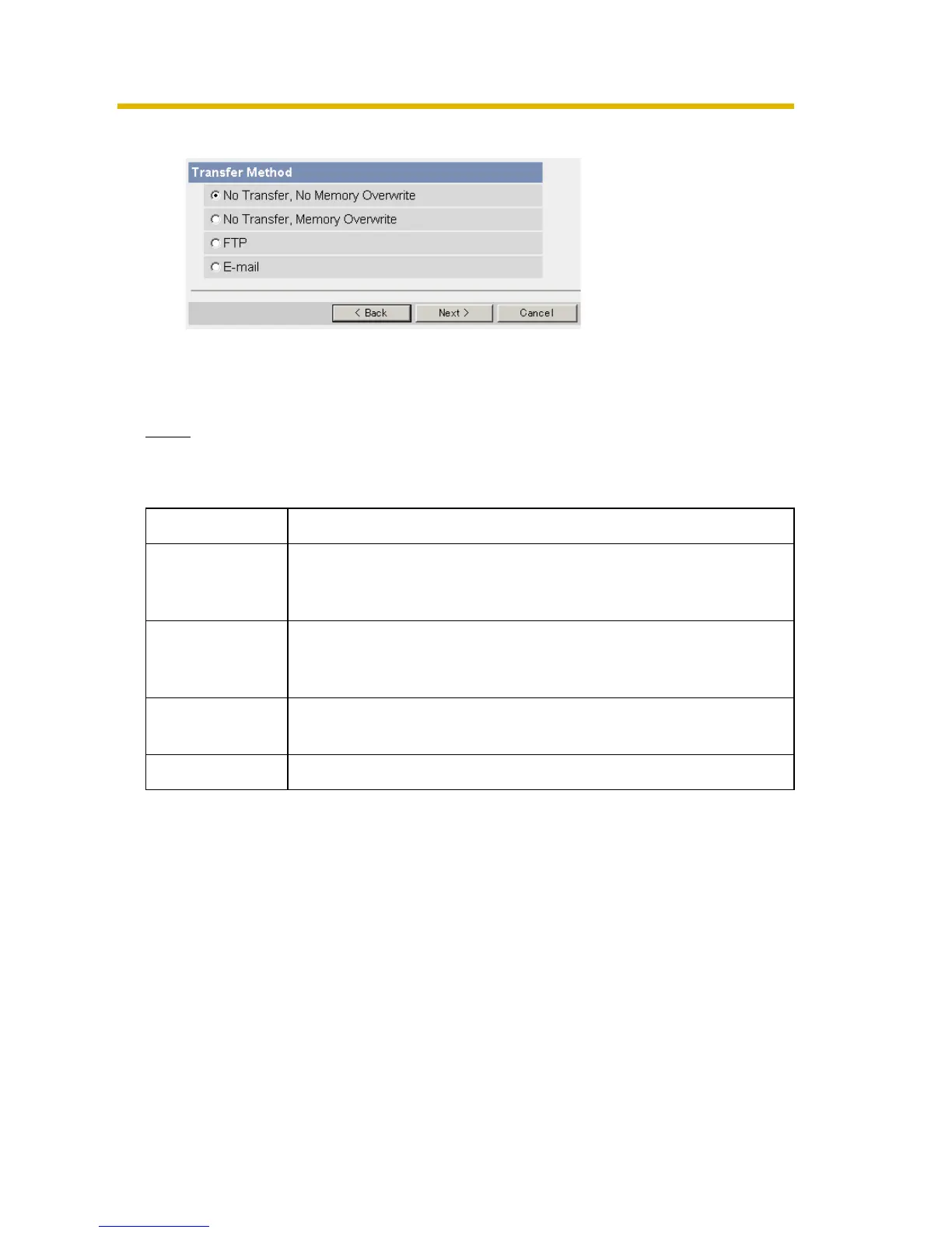 8. Select the transfer method, and click [Next>].