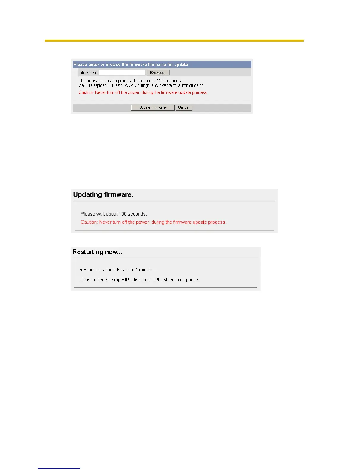 • Clicking [Cancel] takes you back to the Top page without firmware update.