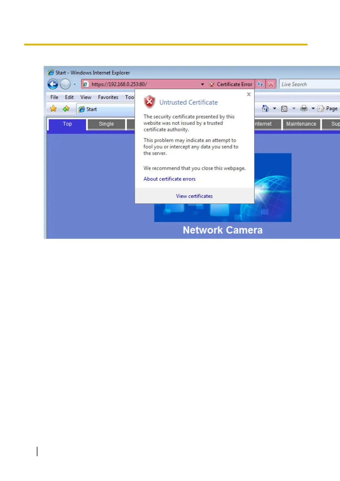 4. Click [Certificate Error] in the address bar, then click [View certificates].