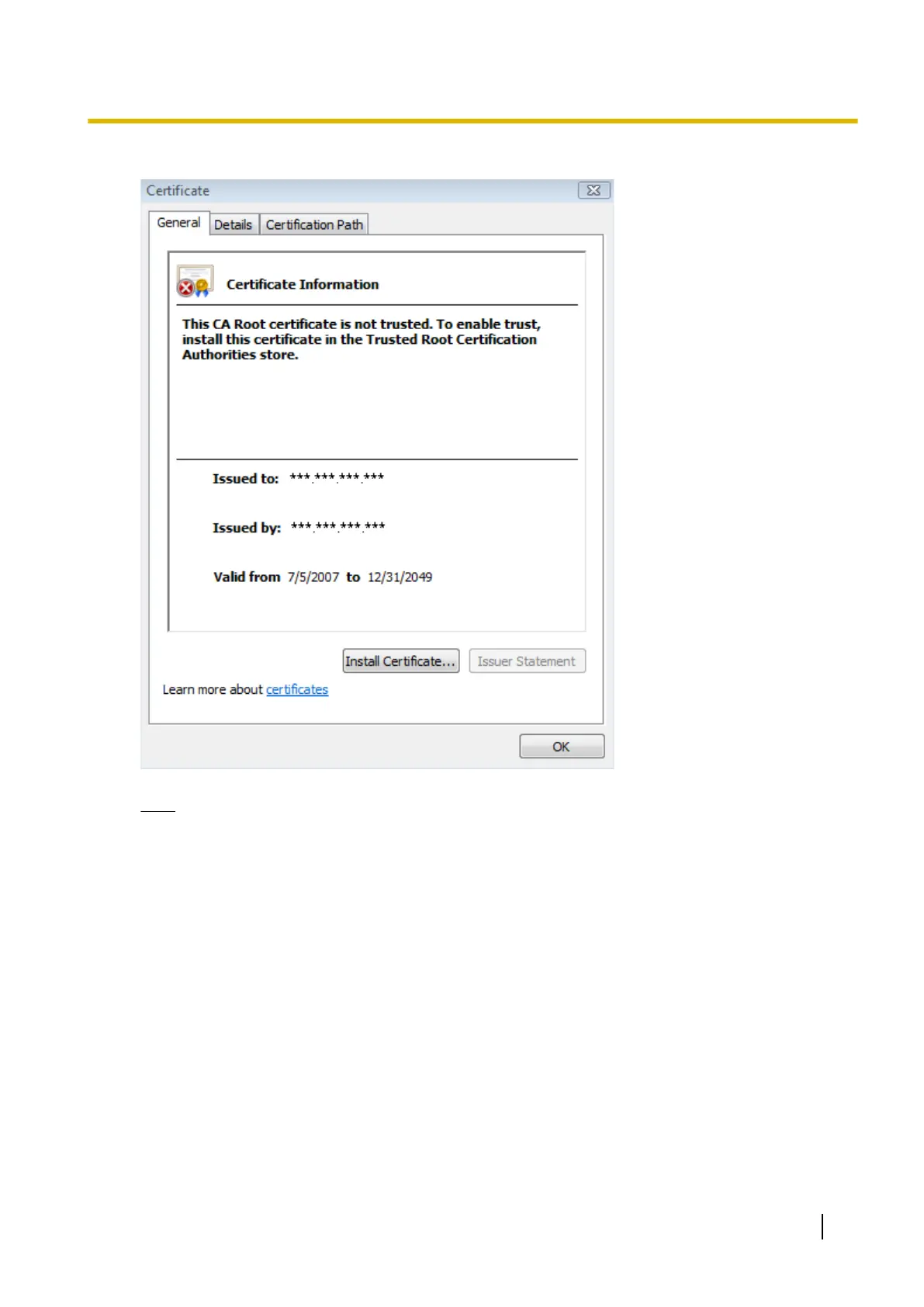 • If the [Install Certificate...] button is not displayed, exit Internet Explorer, then start Internet Explorer