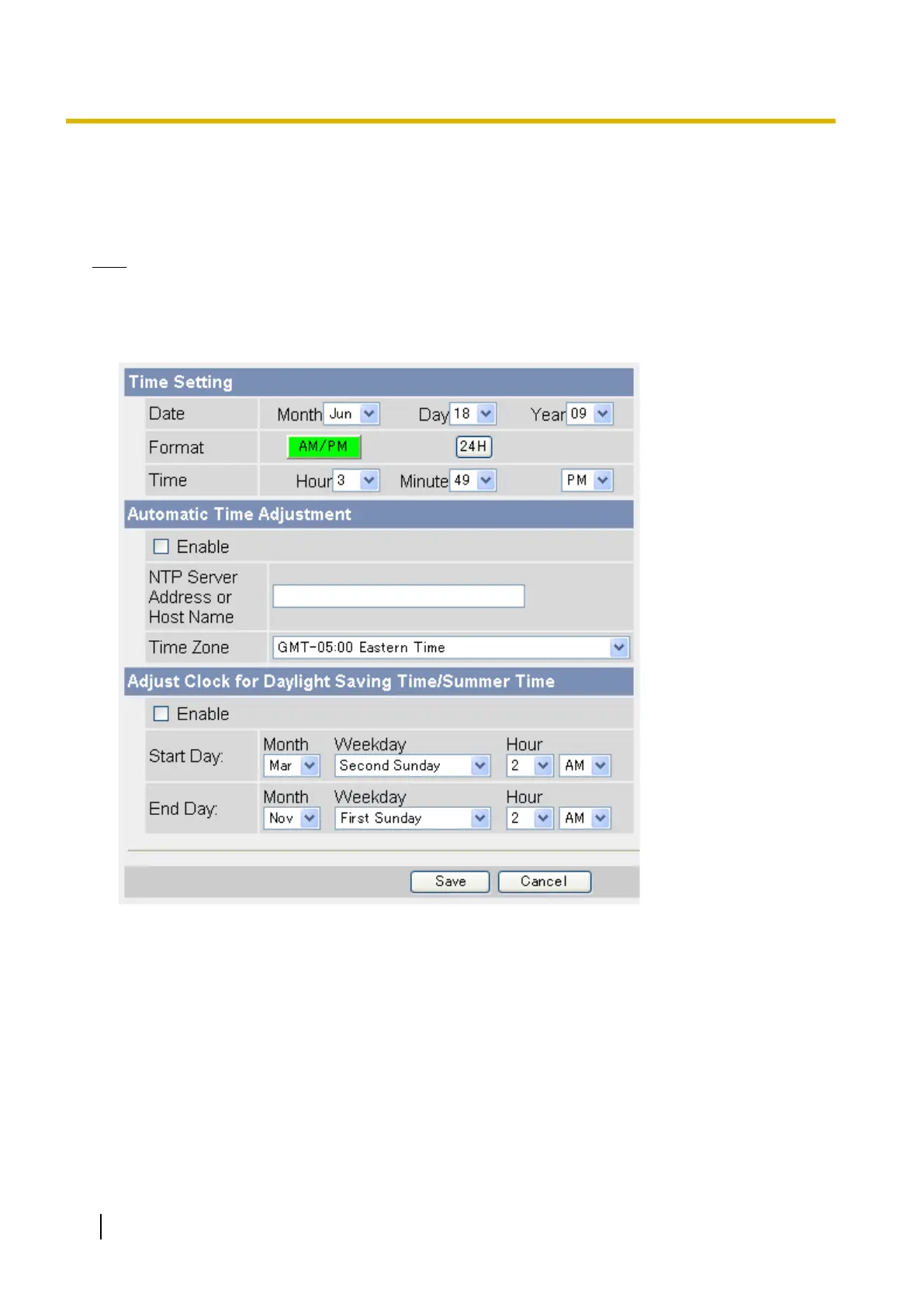 d. Under [Automatic Time Adjustment], select whether you want to enable automatic date and time