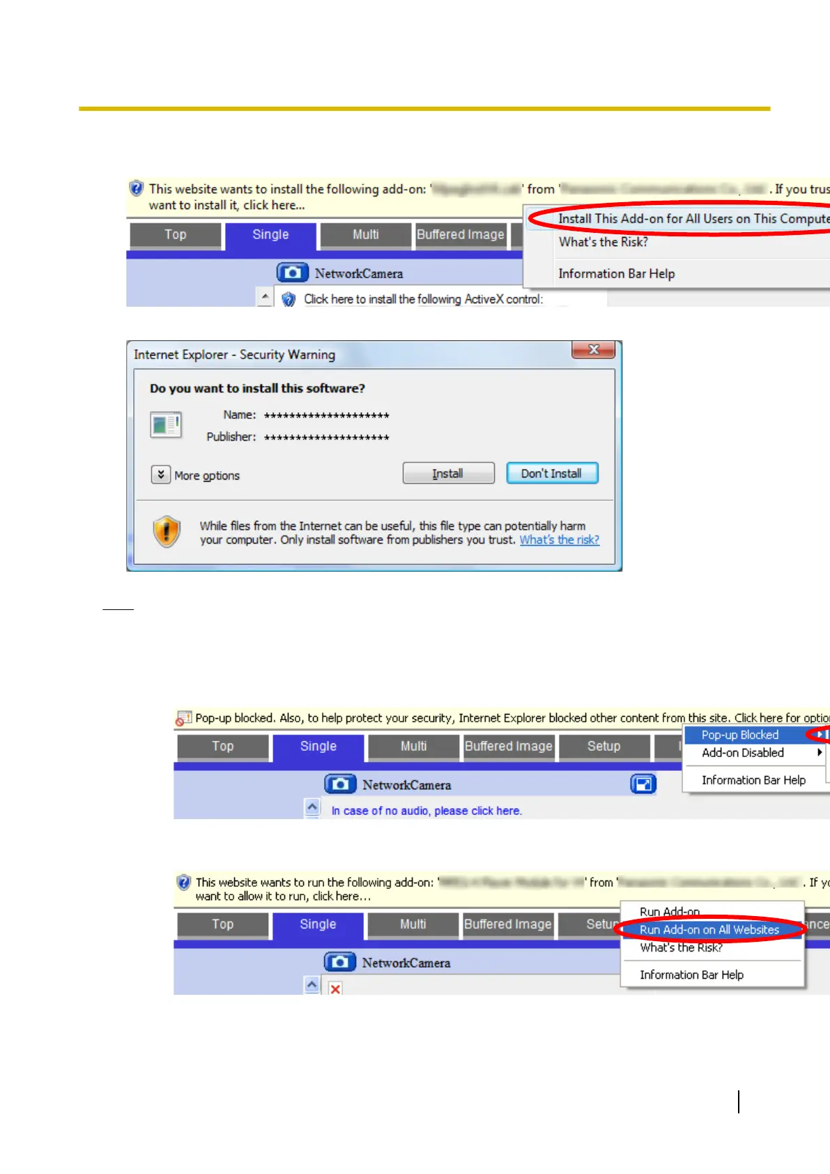 2. When the ActiveX Control message is displayed in Internet Explorer, click the message and select