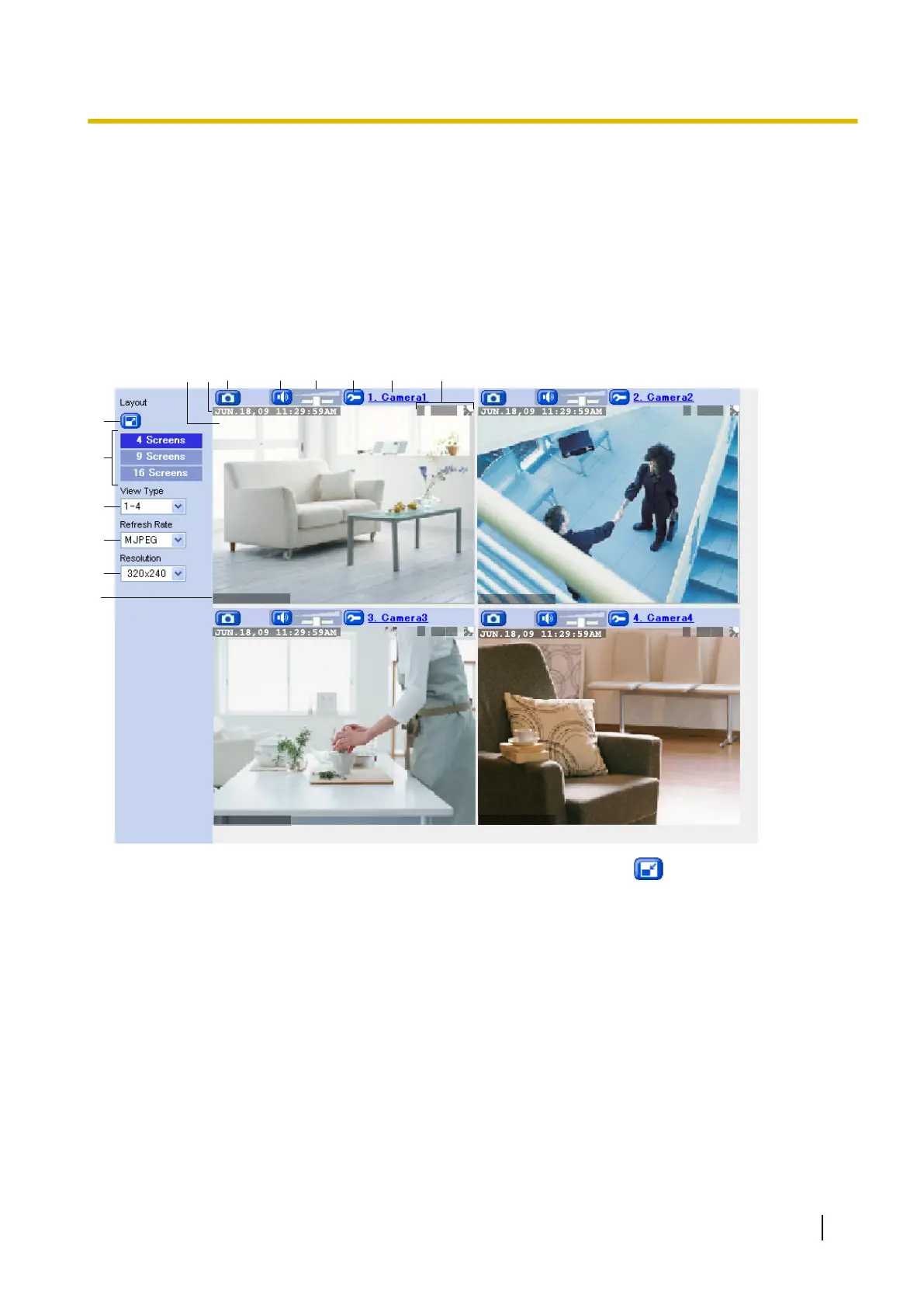 to 16 cameras can be registered), follow the procedure below to view camera images.