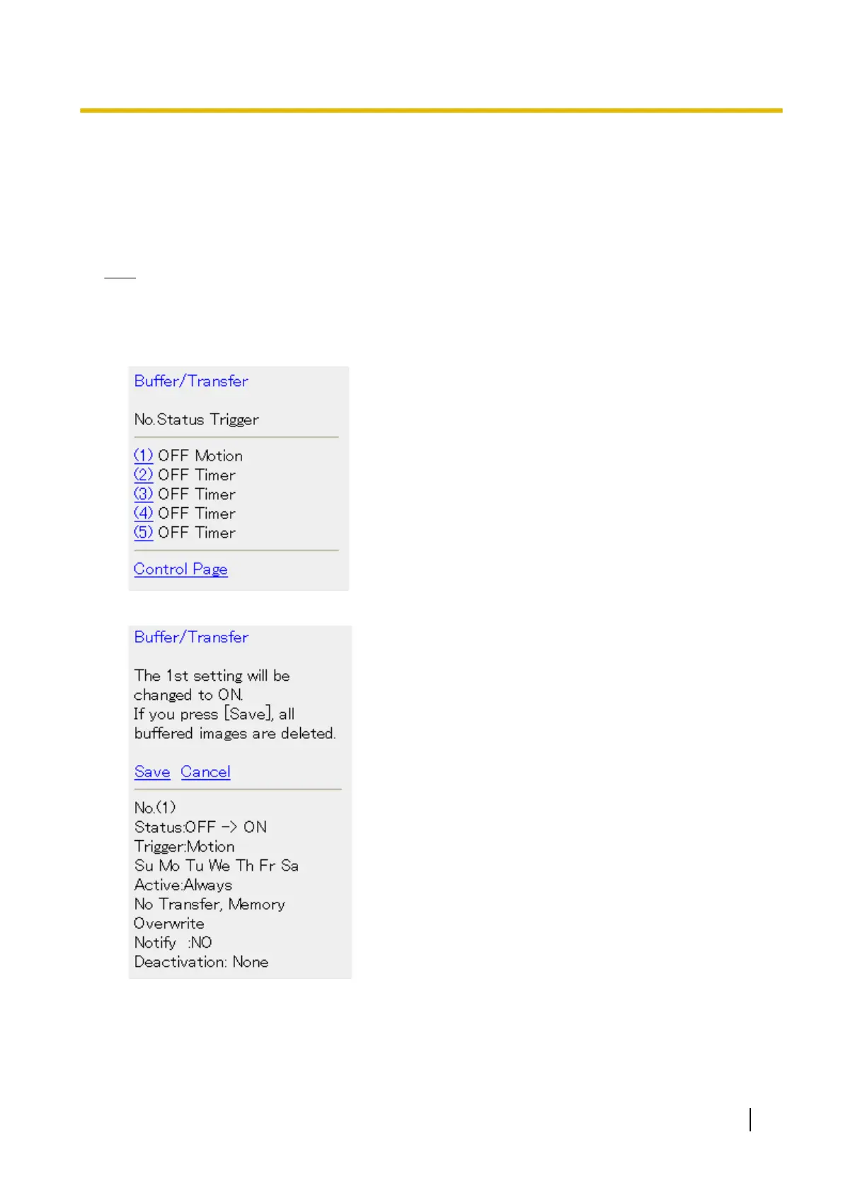 While accessing the camera from your mobile phone, select [Buffer/Transfer] to display the image buffer and