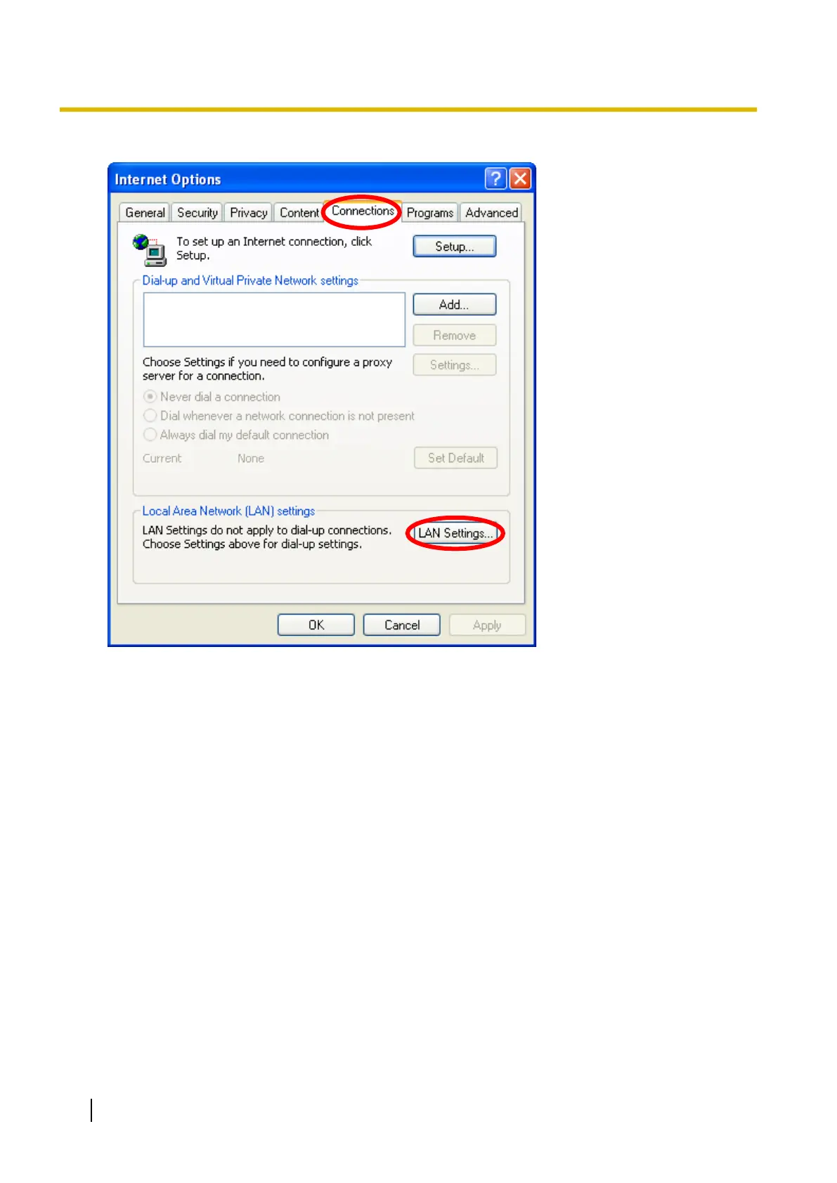 3. Click the [Connections] tab, then click [LAN Settings...].