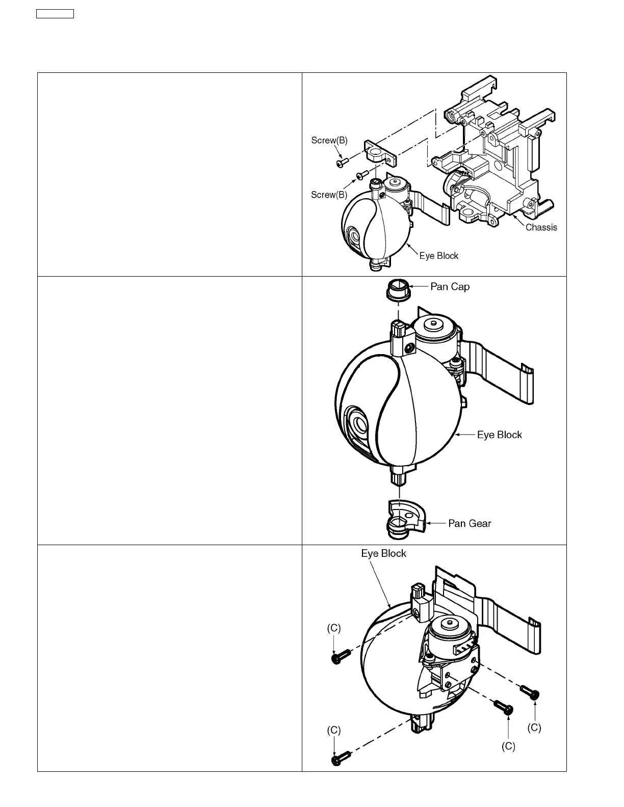 3. Remove the Pan Cap and the Pan Gear from the Eye Block.