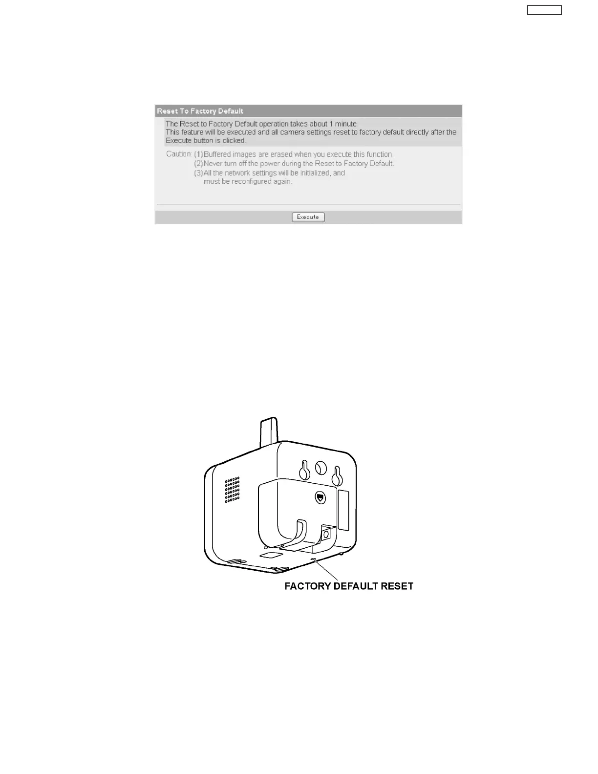 • Do not turn off the camera while the camera is being reset. When the lens finishes panning and tilting, it is safe to turn off the
