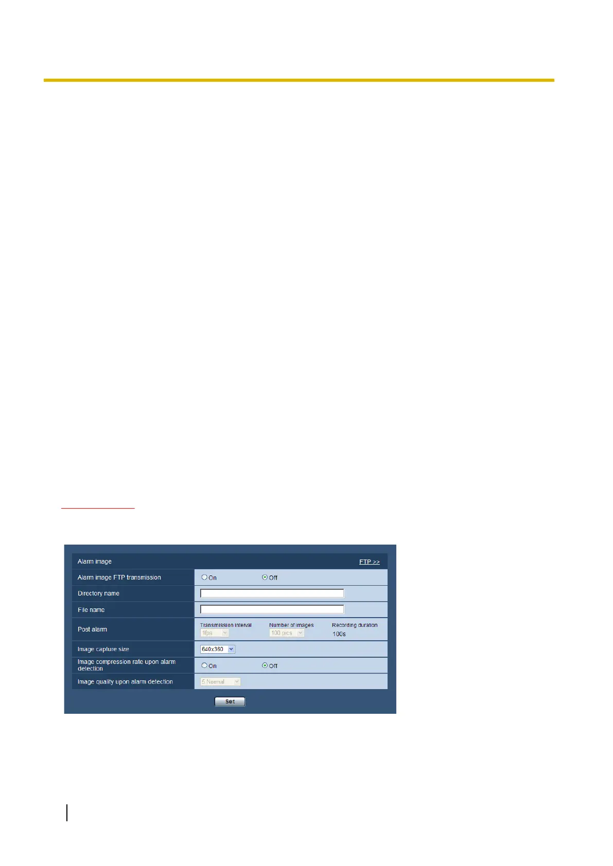 The alarm image will be transmitted to an FTP server. To transmit alarm images to an FTP server, it is