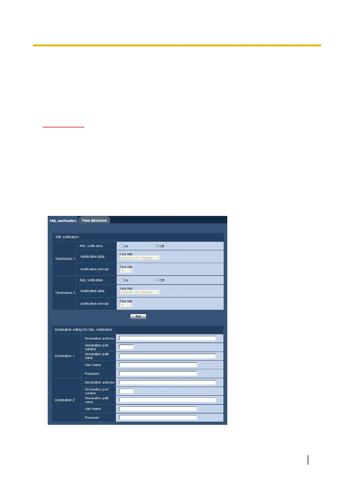 The settings relating to the XML notification and the settings relating to the face detection can be configured