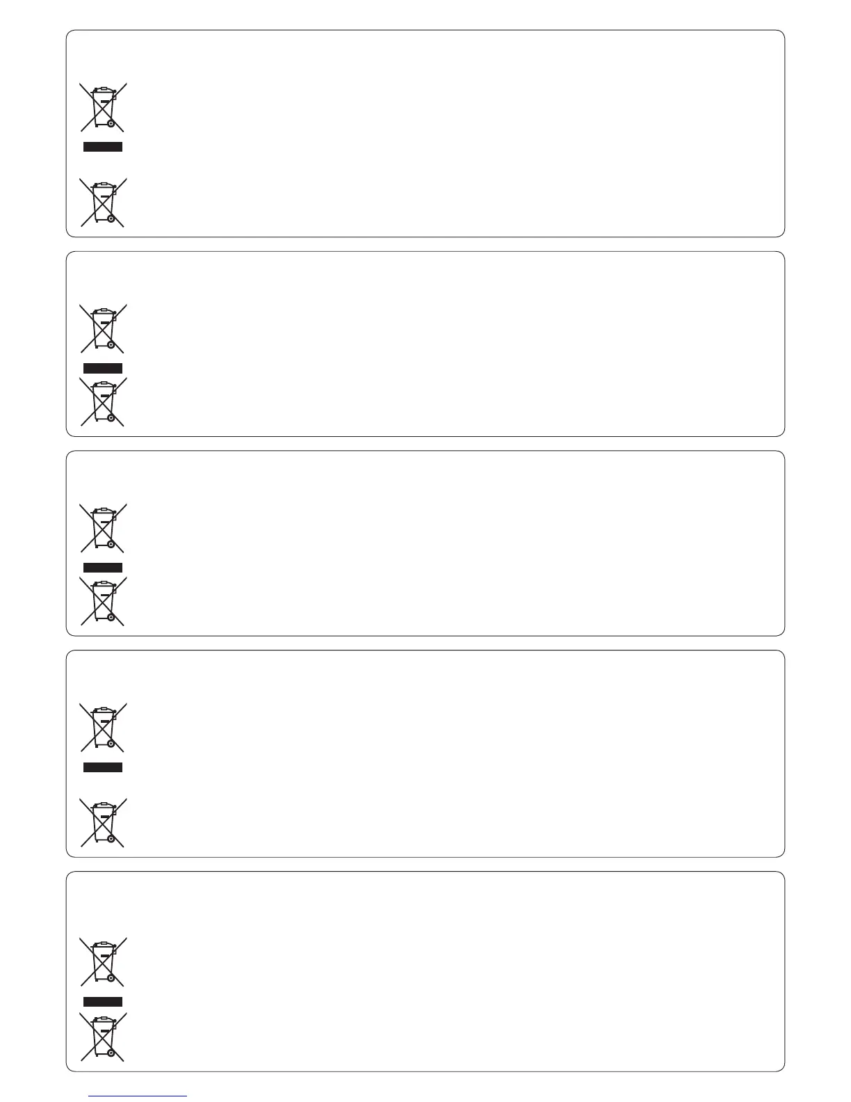 Eski ürünlerin ve pillerin toplanması ve geri kazanılması için bu atıkları lütfen yasayla belirlenmiş olan uygun toplama merkezlerine teslim ediniz.