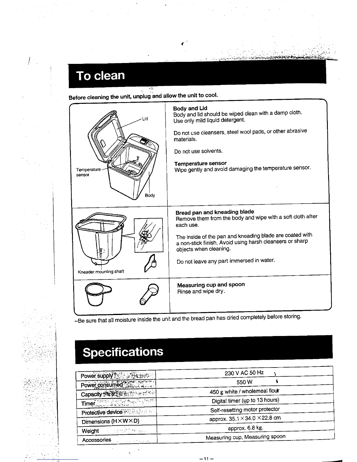 Panasonic Bread Bakery SD-200 - To clean; Cleaning and Maintenance Procedures