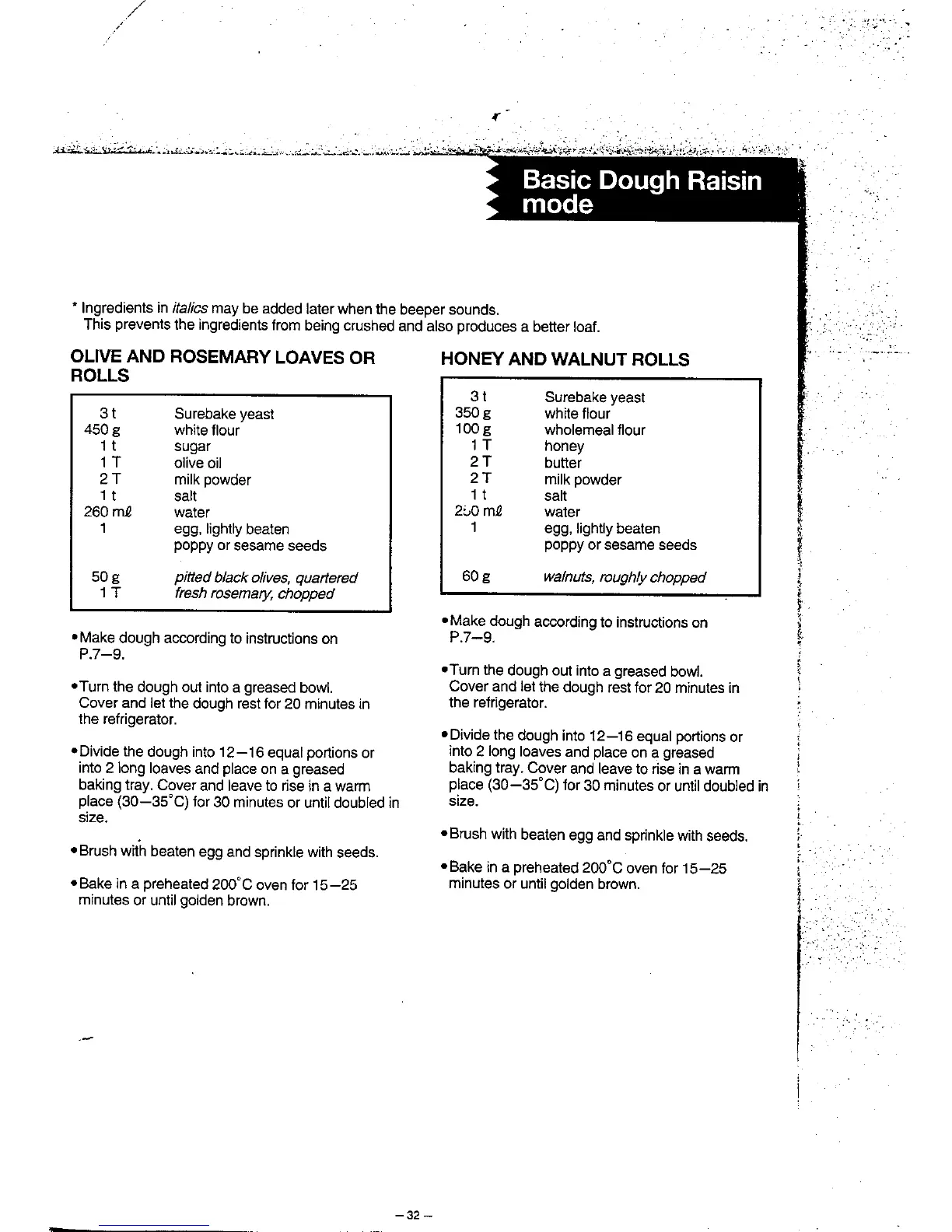 Panasonic Bread Bakery SD-200 - Basic Dough Raisin mode; Olive;Rosemary Rolls and Honey;Walnut Rolls Recipes