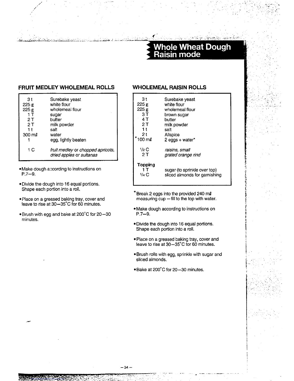 Panasonic Bread Bakery SD-200 - Whole Wheat Dough Raisin mode; Fruit Medley;Wholemeal Raisin Rolls Recipes