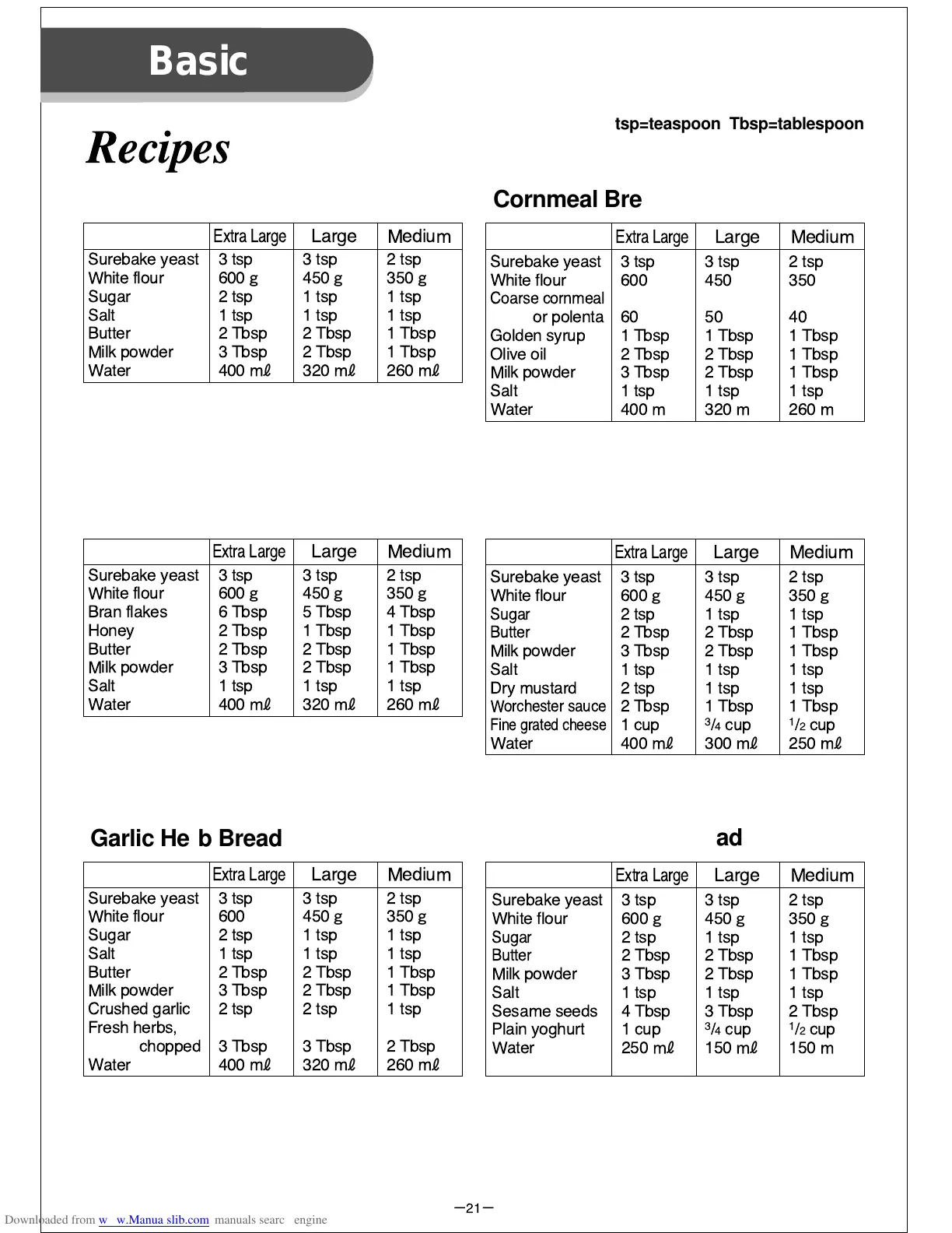 tsp=teaspoon Tbsp=tablespoon