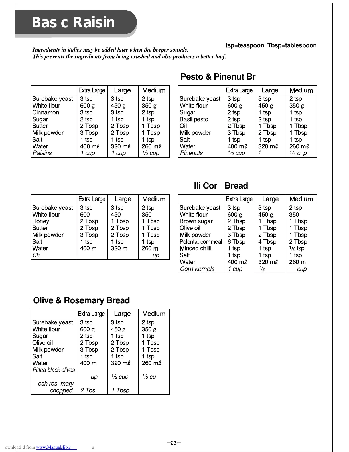 tsp=teaspoon Tbsp=tablespoon