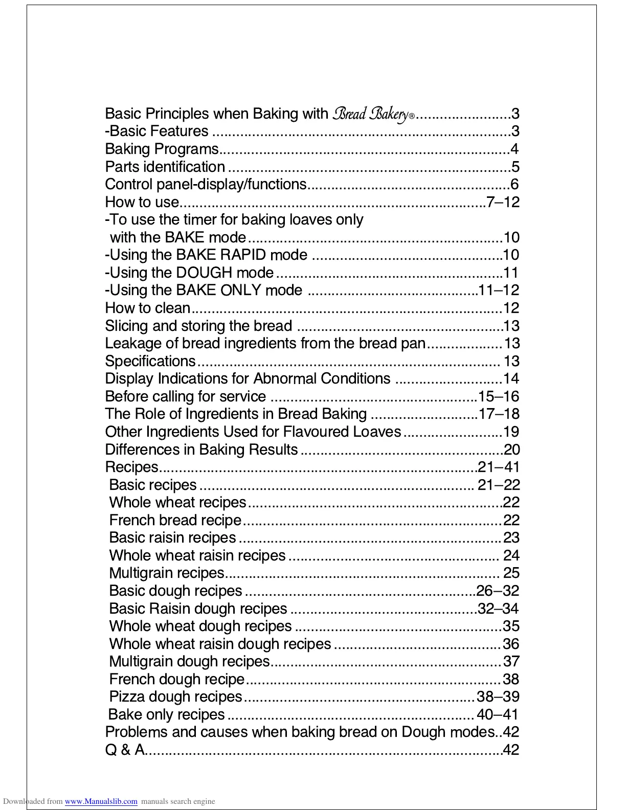 Problems and causes when baking bread on Dough modes..42