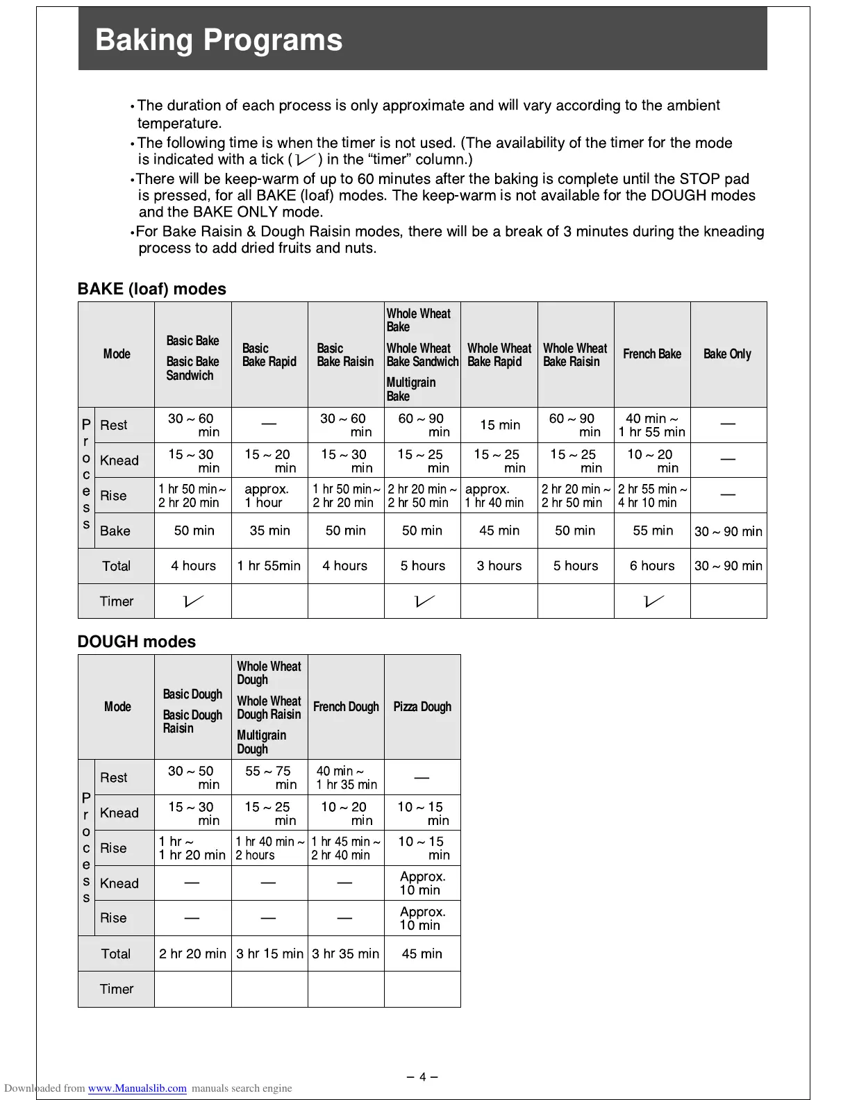 is pressed, for all BAKE (loaf) modes. The keep-warm is not available for the DOUGH modes