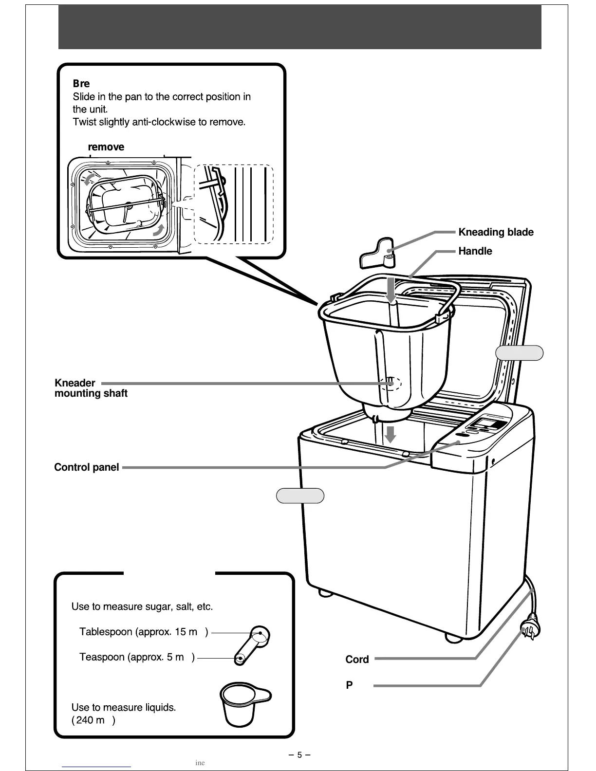 Panasonic Bread Bakery SD-250 - Parts identification