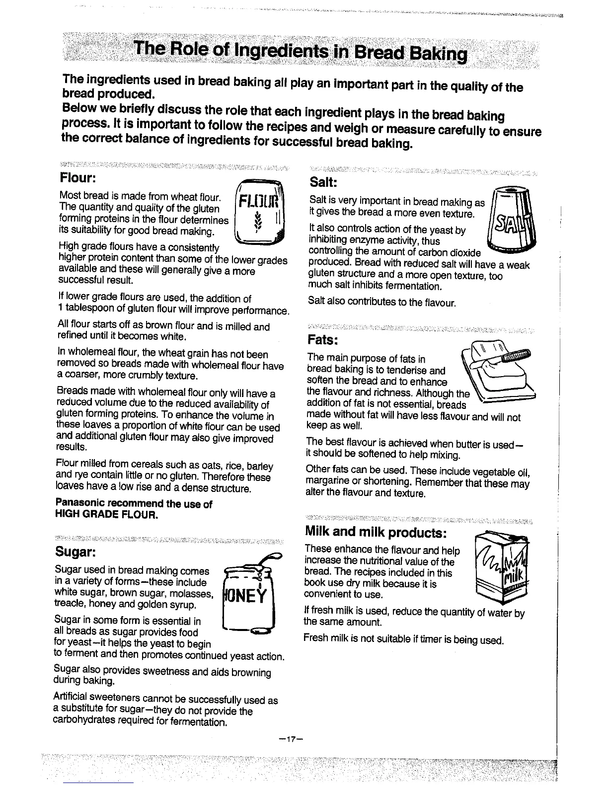 Panasonic Bread Bakery SD-251 - Ingredient Roles in Baking; Key Ingredient Functions