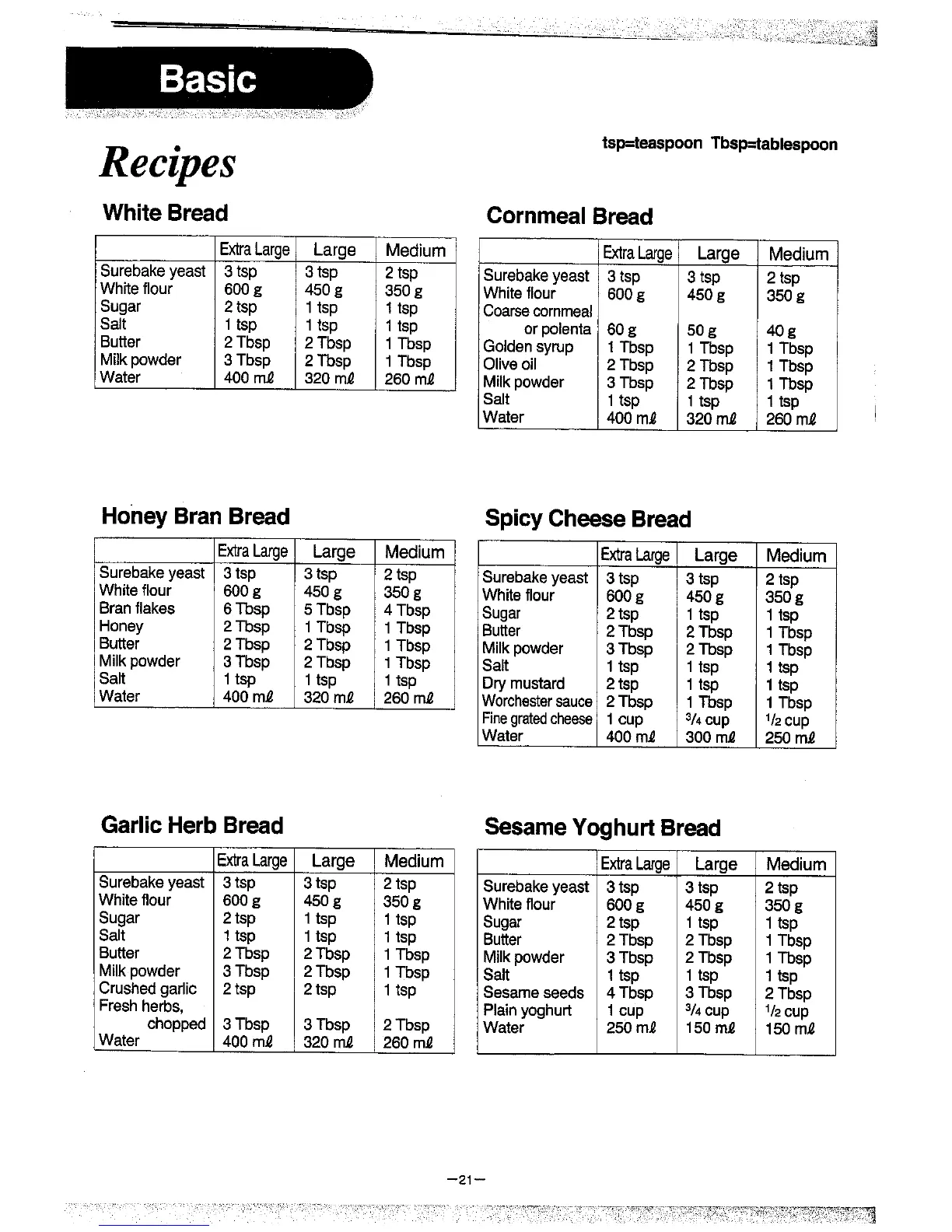 Panasonic Bread Bakery SD-251 - Recipes; Basic and Whole Wheat Breads