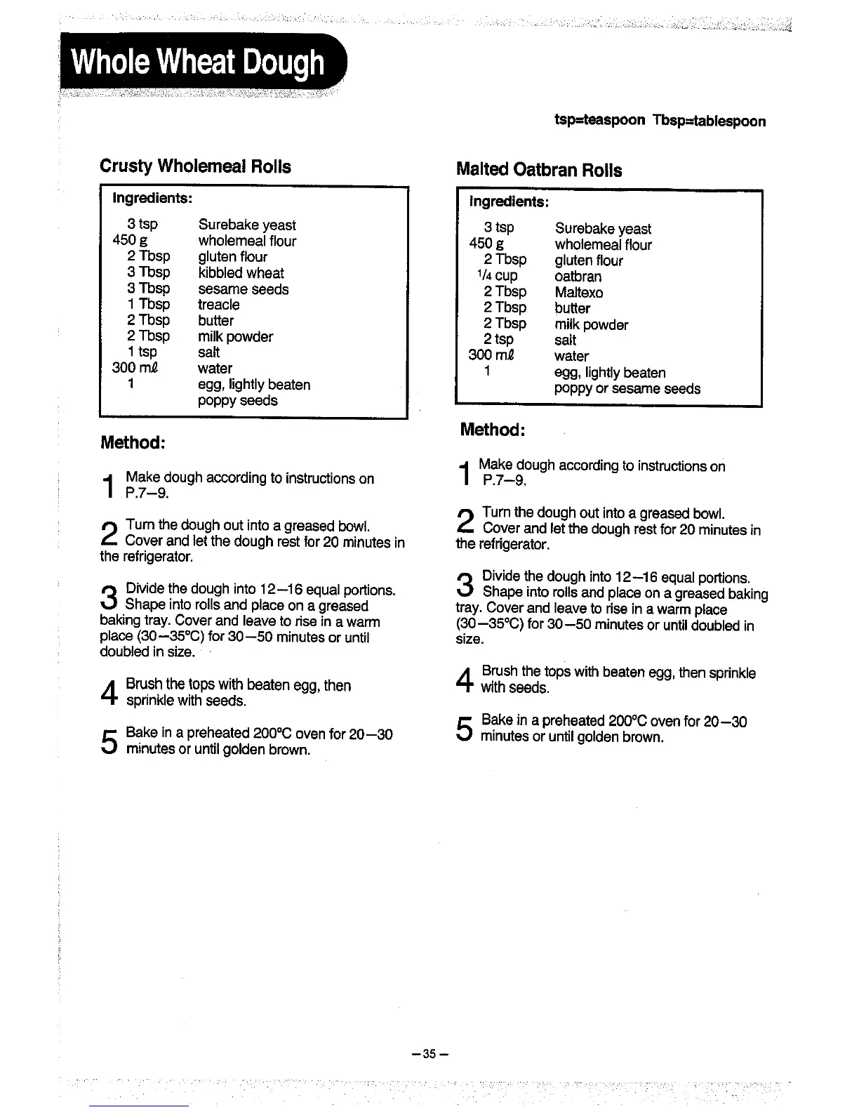 Panasonic Bread Bakery SD-251 - Whole Wheat Dough; Crusty Wholemeal Rolls; Malted Oatbran Rolls