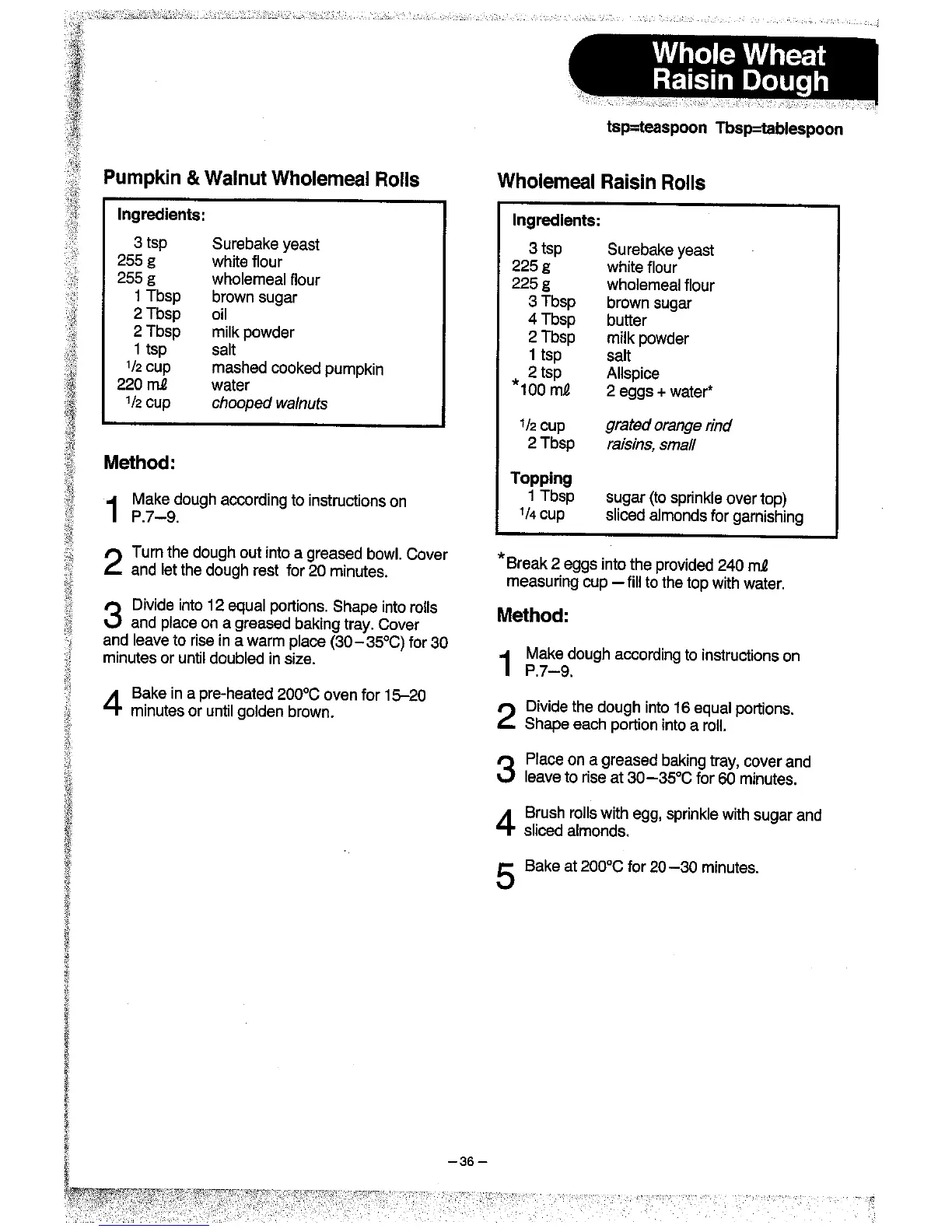 Panasonic Bread Bakery SD-251 - Whole Wheat Raising Dough; Pumpkin and Walnut Wholemeal Rolls; Wholemeal Raisin Rolls