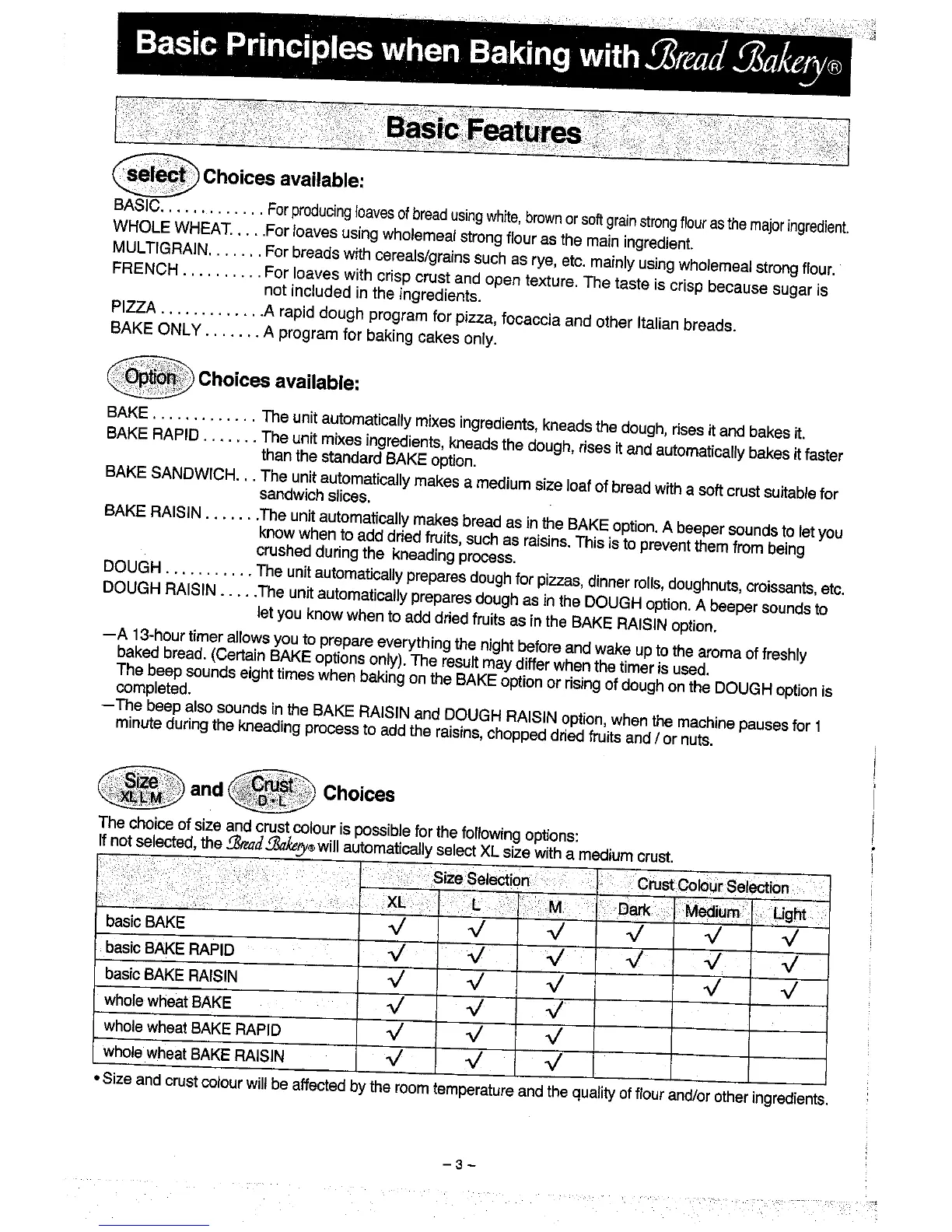 Panasonic Bread Bakery SD-251 - Basic Principles of Bread Baking; Features, Types, and Options
