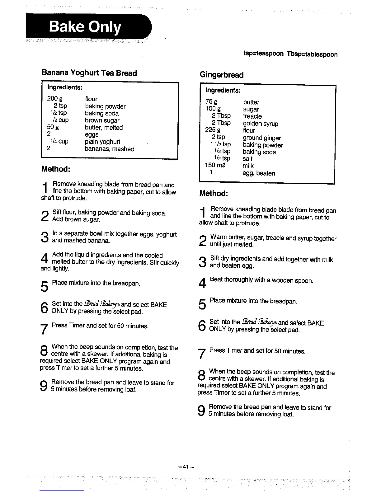 Panasonic Bread Bakery SD-251 - Bake Only; Banana Yoghurt Tea Bread; Gingerbread