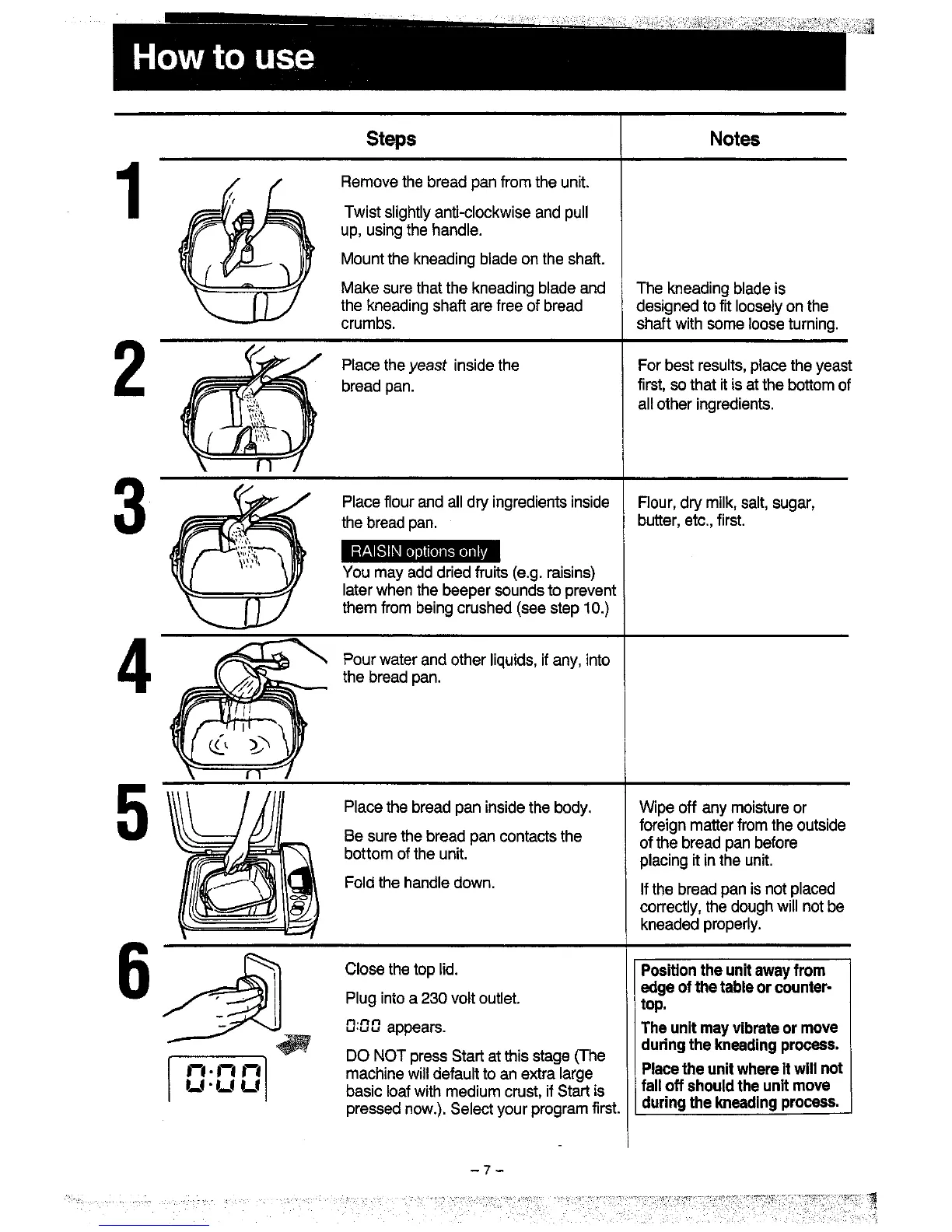 Panasonic Bread Bakery SD-251 - Operating Instructions; Step-by-Step Usage Guide