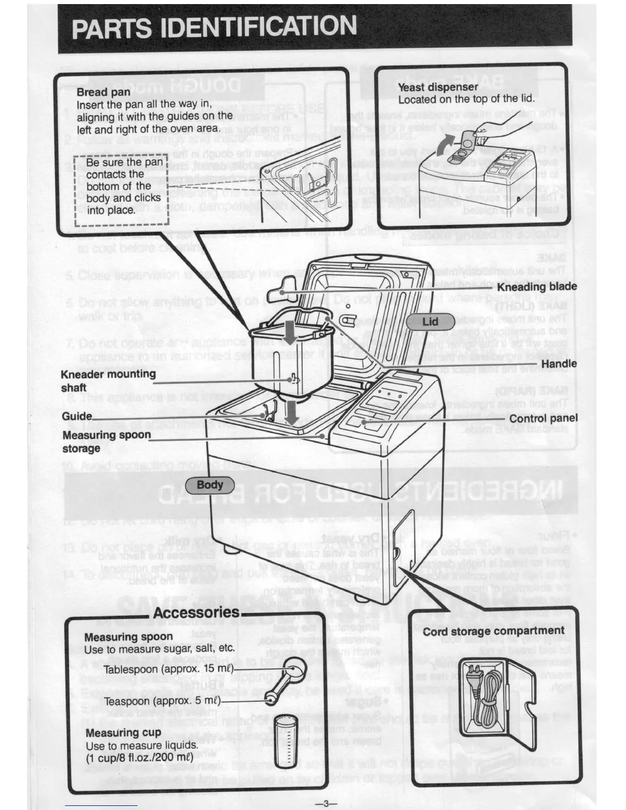 Panasonic Bread Bakery SD-BT51P - Appliance Parts Identification; Main Components and Accessories