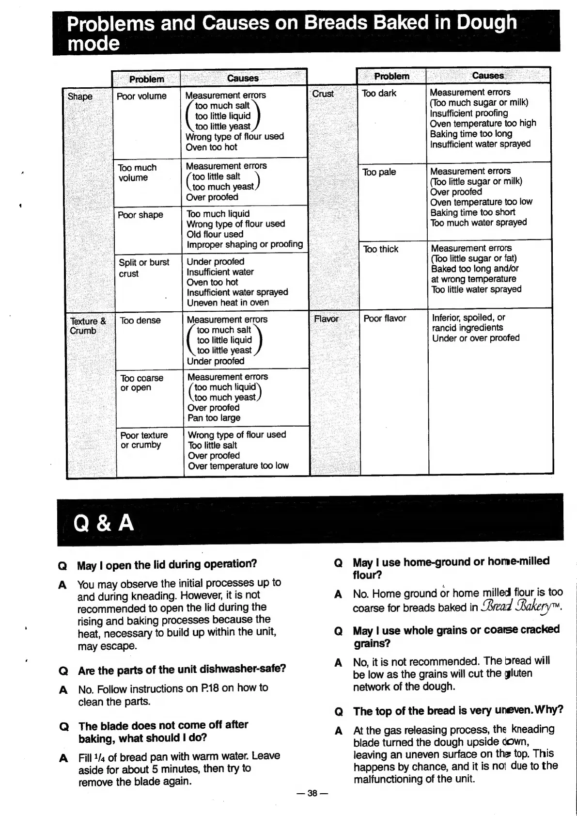 Panasonic Bread Bakery SD-BT55P - Problems and Causes on Breads Baked in Dough mode; Q & A