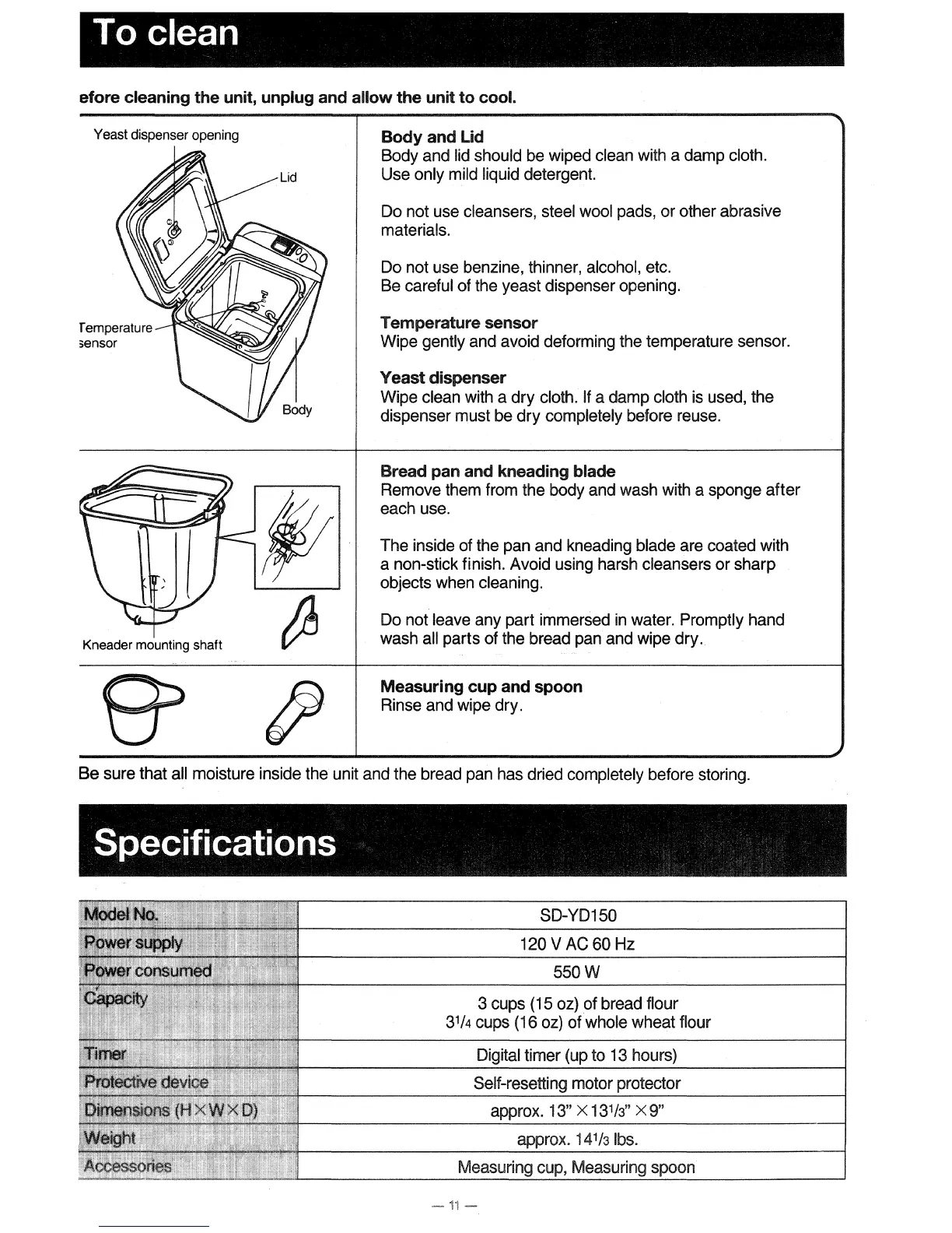 Panasonic Bread Bakery SD-YD150 - Abnormal conditions