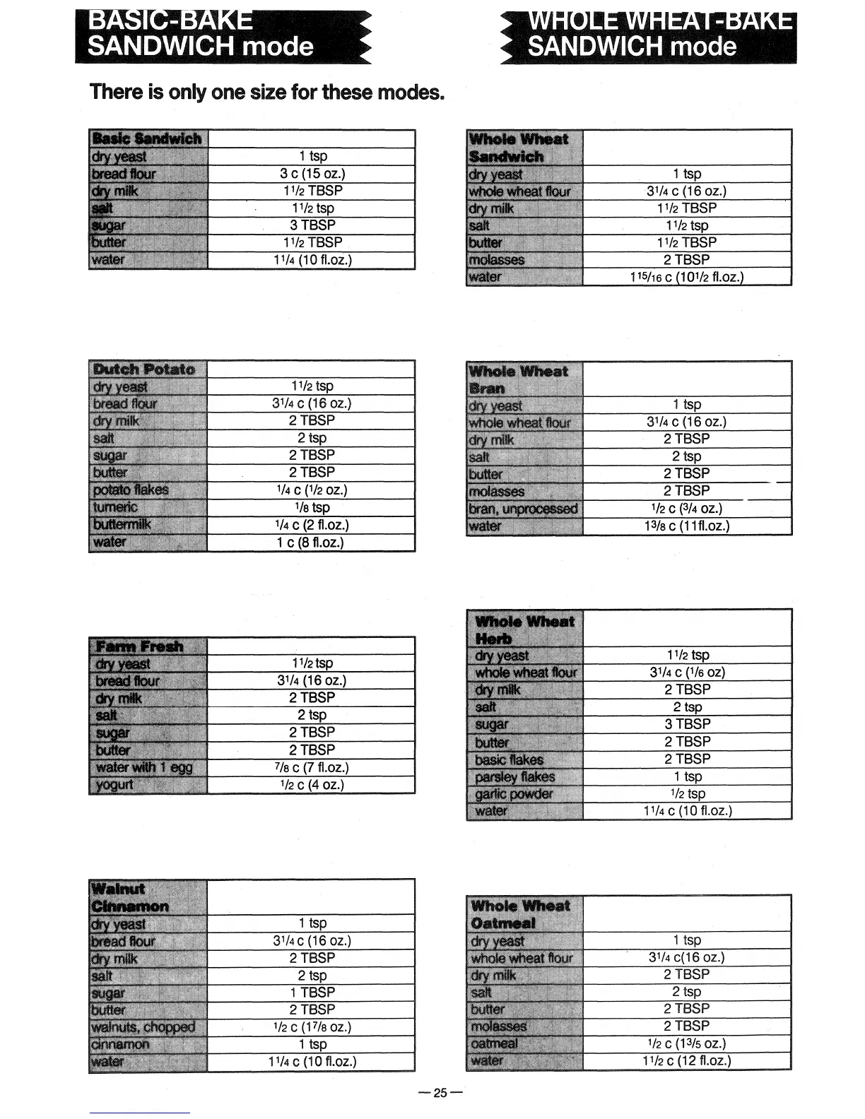 Panasonic Bread Bakery SD-YD150 - Basic-Bake Sandwich Mode; Whole Wheat-Bake Sandwich Mode; Basic Sandwich;Dutch Potato;Farm Fresh;Walnut; Whole Wheat Sandwich;Whole Wheat Bran;Whole Wheat Herb;Whole Wheat Oatmeal