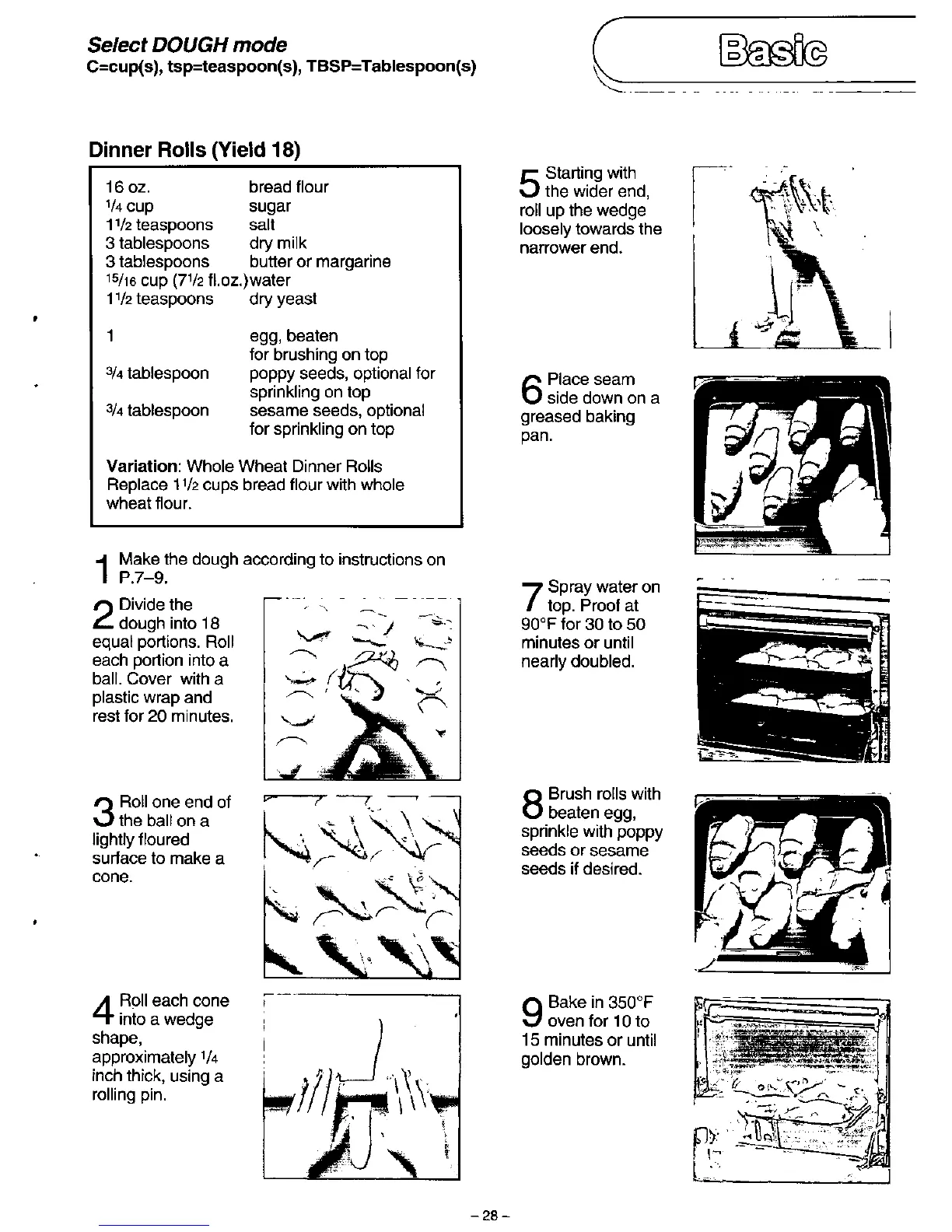 Panasonic Bread Bakery SD-YD250 - Dough Recipes; Dinner Rolls Recipe