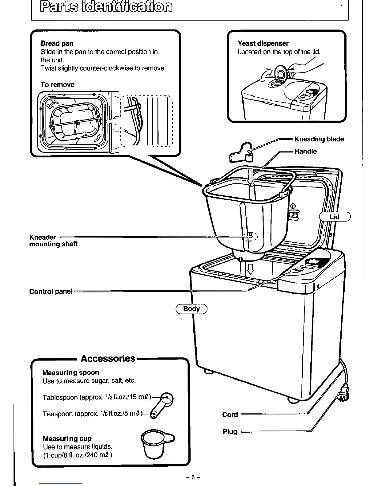 Panasonic Bread Bakery SD-YD250 - Appliance Parts Identification