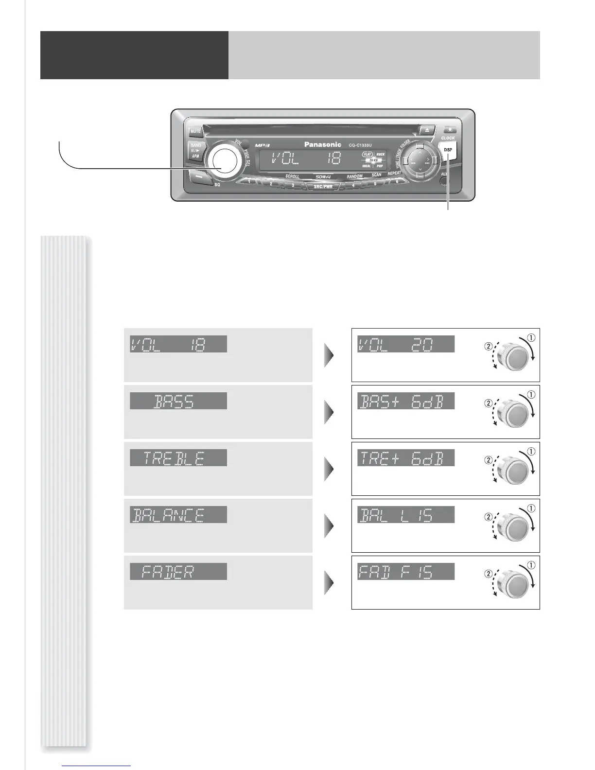 Note: If no operation takes place for more than 5 seconds in the audio menu (2 seconds in Main volume adjust-