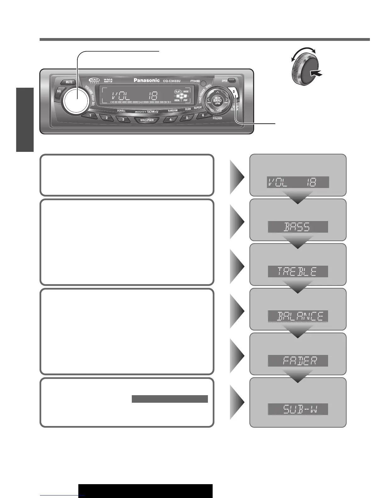 Gamme de réglage : 15 niveaux de chaque et CNT (centre)