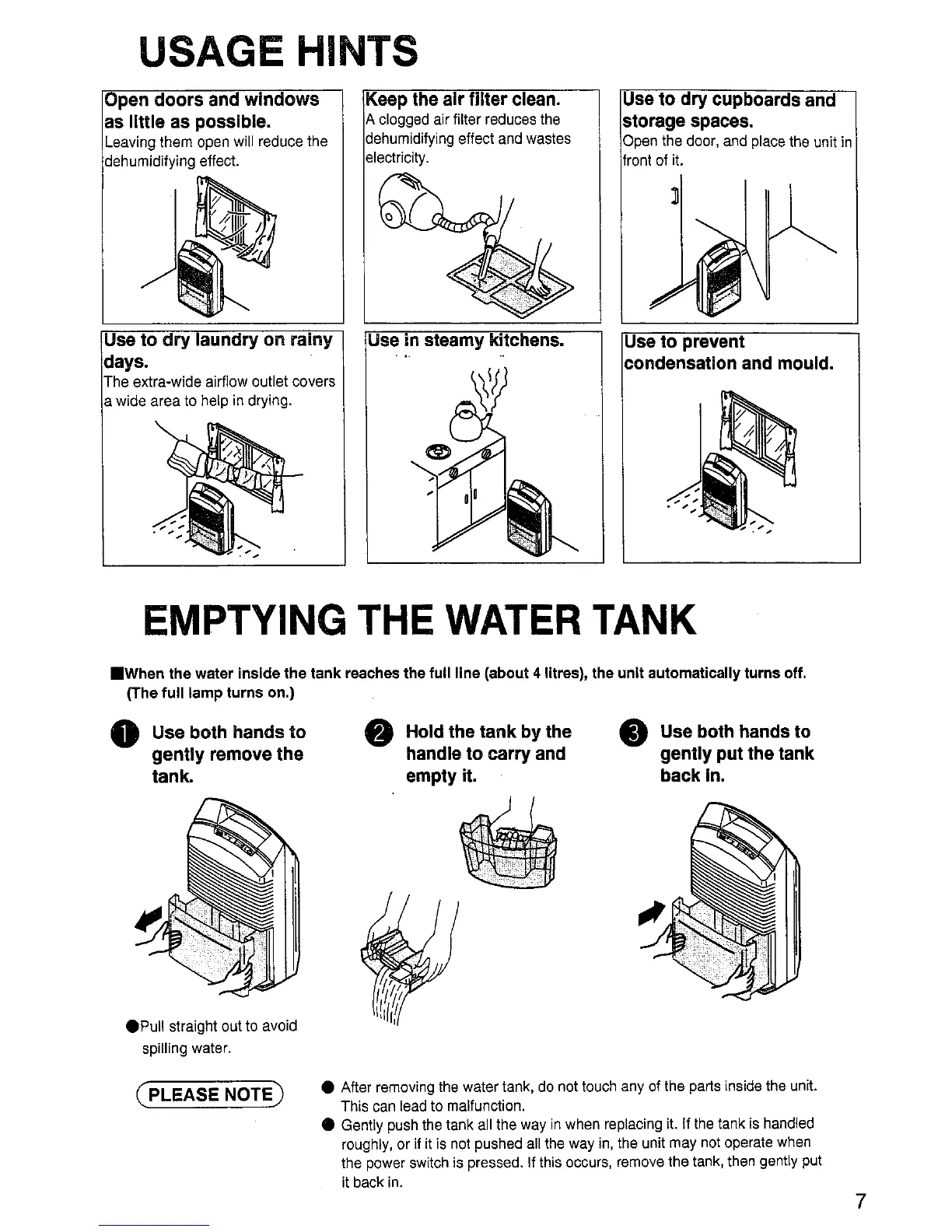 Panasonic CD-B1600R - Emptying the Water Tank; Water Tank Removal and Replacement; Water Tank Handling Precautions