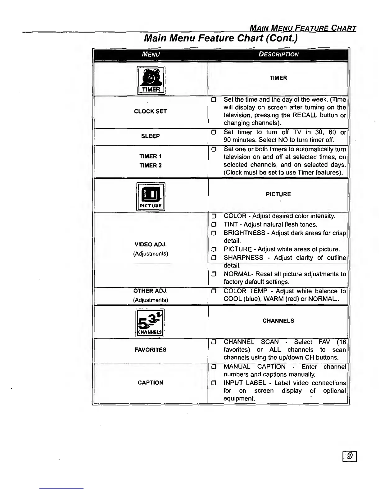 favorites) or ALL channels to