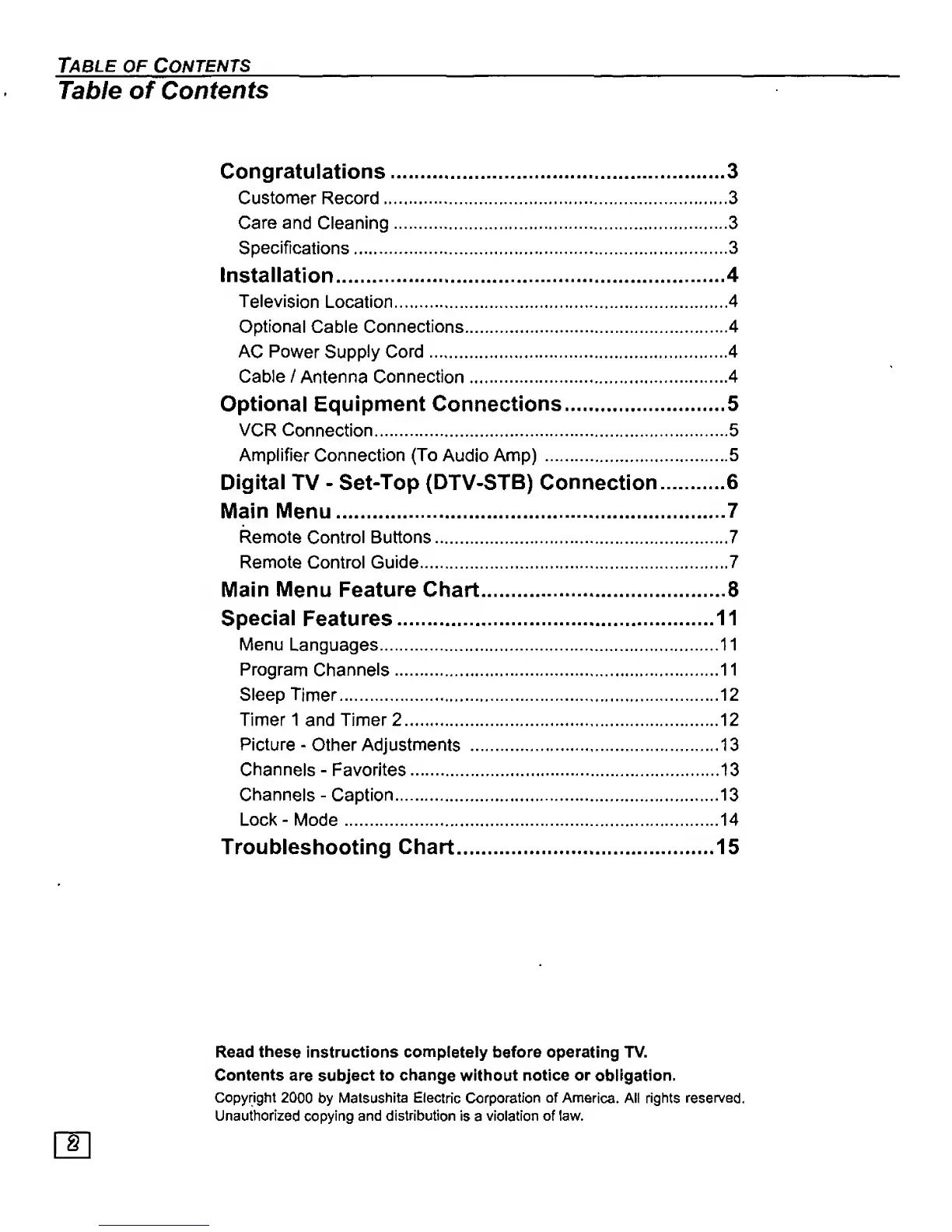 Panasonic ceCT-27D10 - Table of Contents