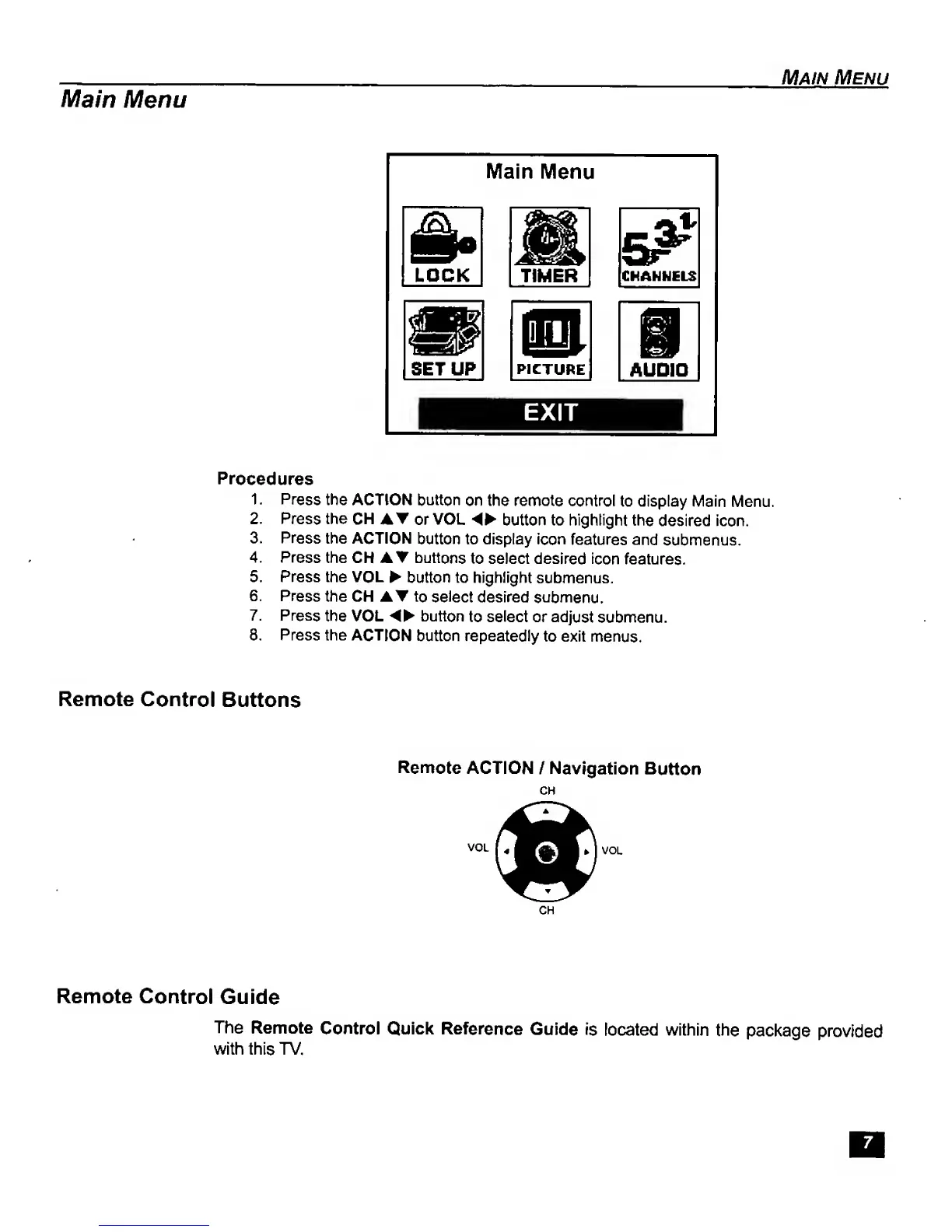 Panasonic ceCT-27D10 - Main Menu; Remote Control Buttons; Remote Control Guide