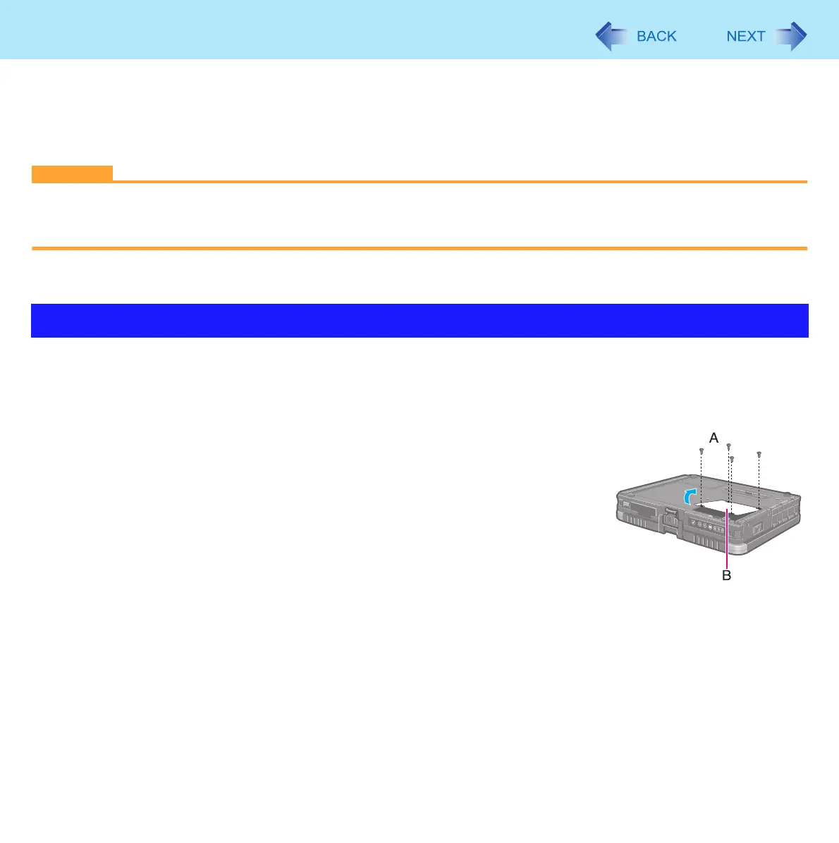 3 Remove the screws (A) and the cover (B) on the bottom of the