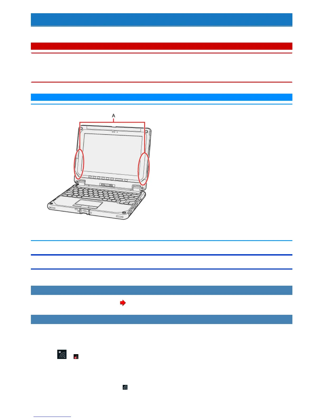 n Communication is established through the wireless LAN antenna (A). Do not block the antenna area with your hand or body.