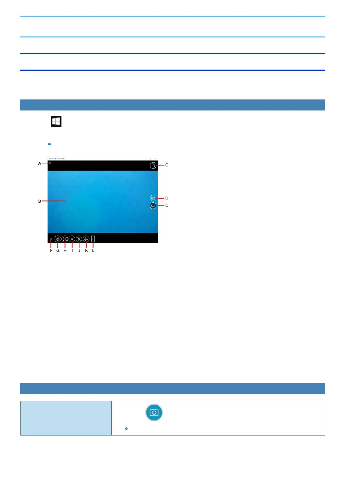 The PanasonicPC Camera Utility can be used to shoot photos and videos.