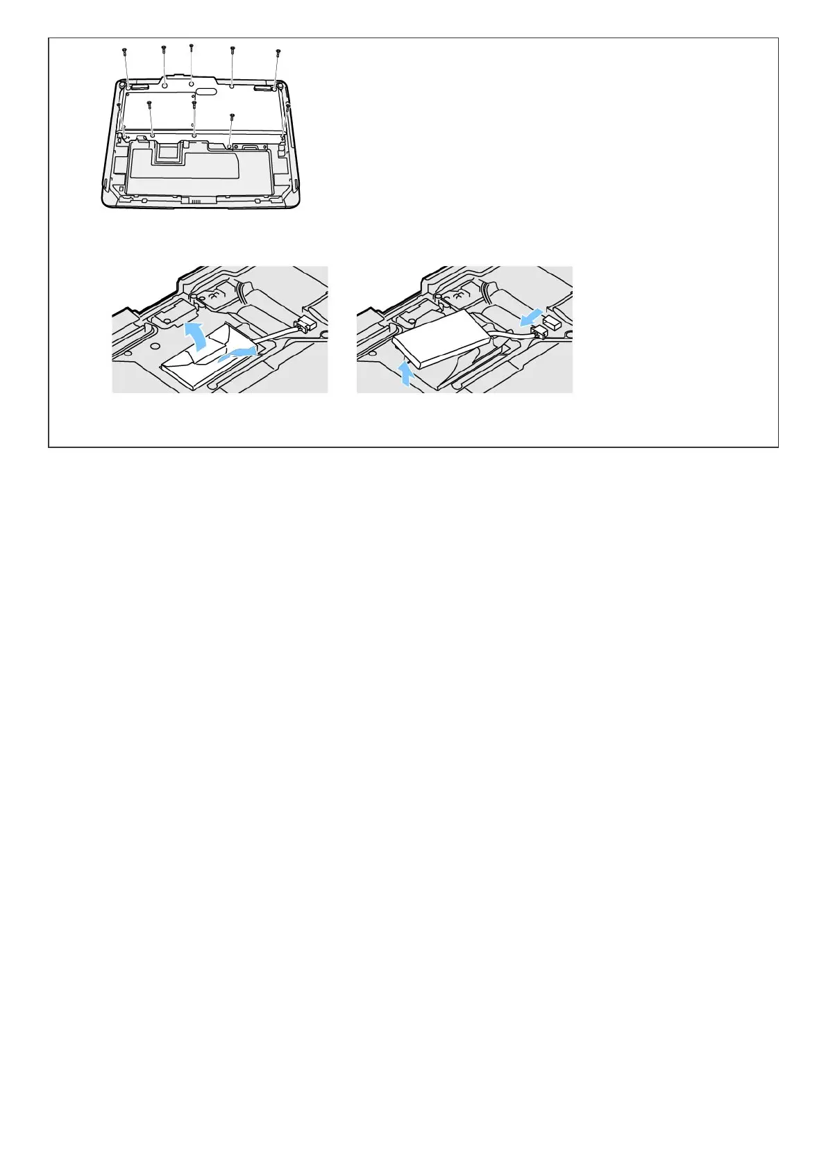 7. Pull out the built-in bridge battery in the sheet cover, and then remove the connector of the built-in bridge battery.