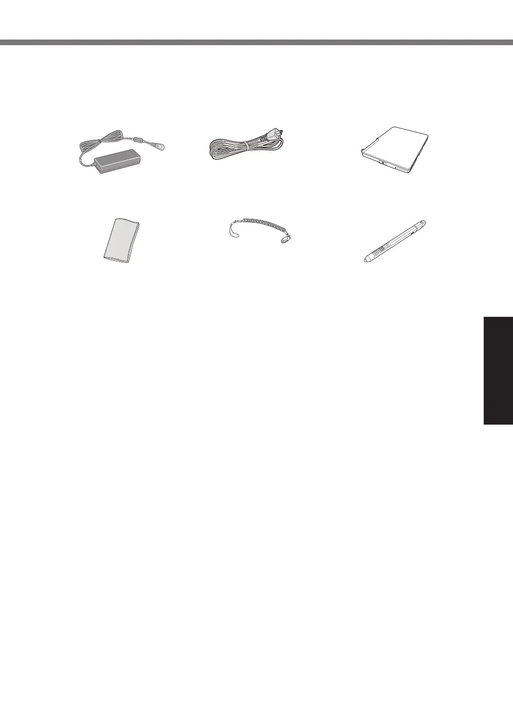 • Soft Cloth . . . . . . 1 • Tether . . . . . . . . . 1 • Digitizer pen