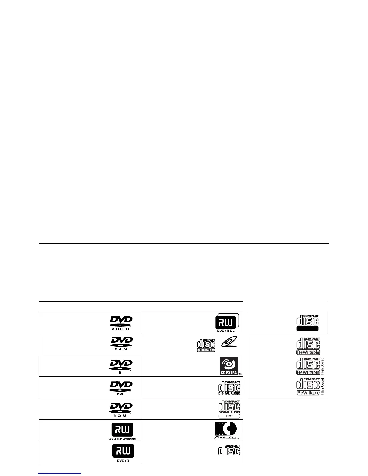 ■ Mit diesem Laufwerk konnen alle Discs abgespielt werden, die mit den unten